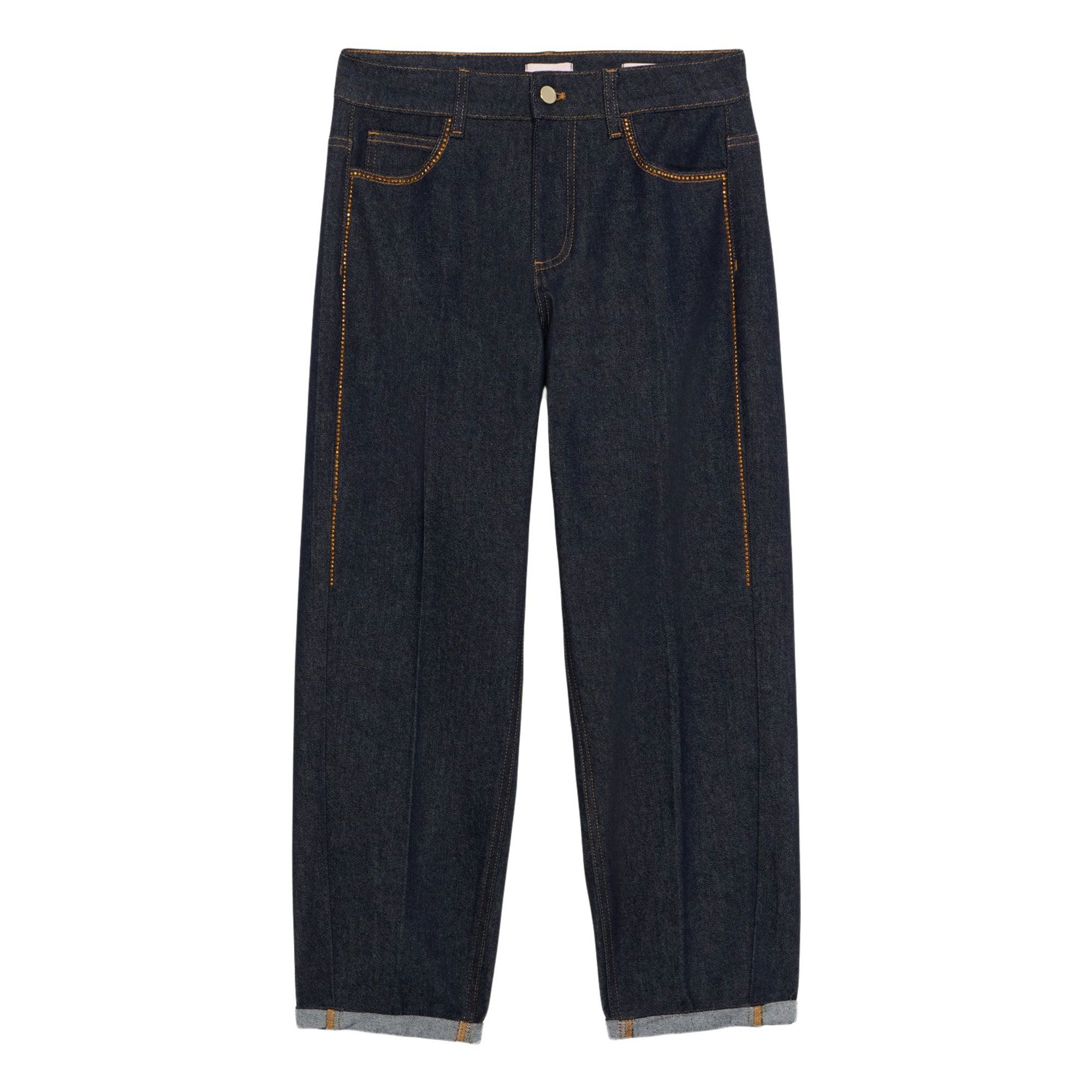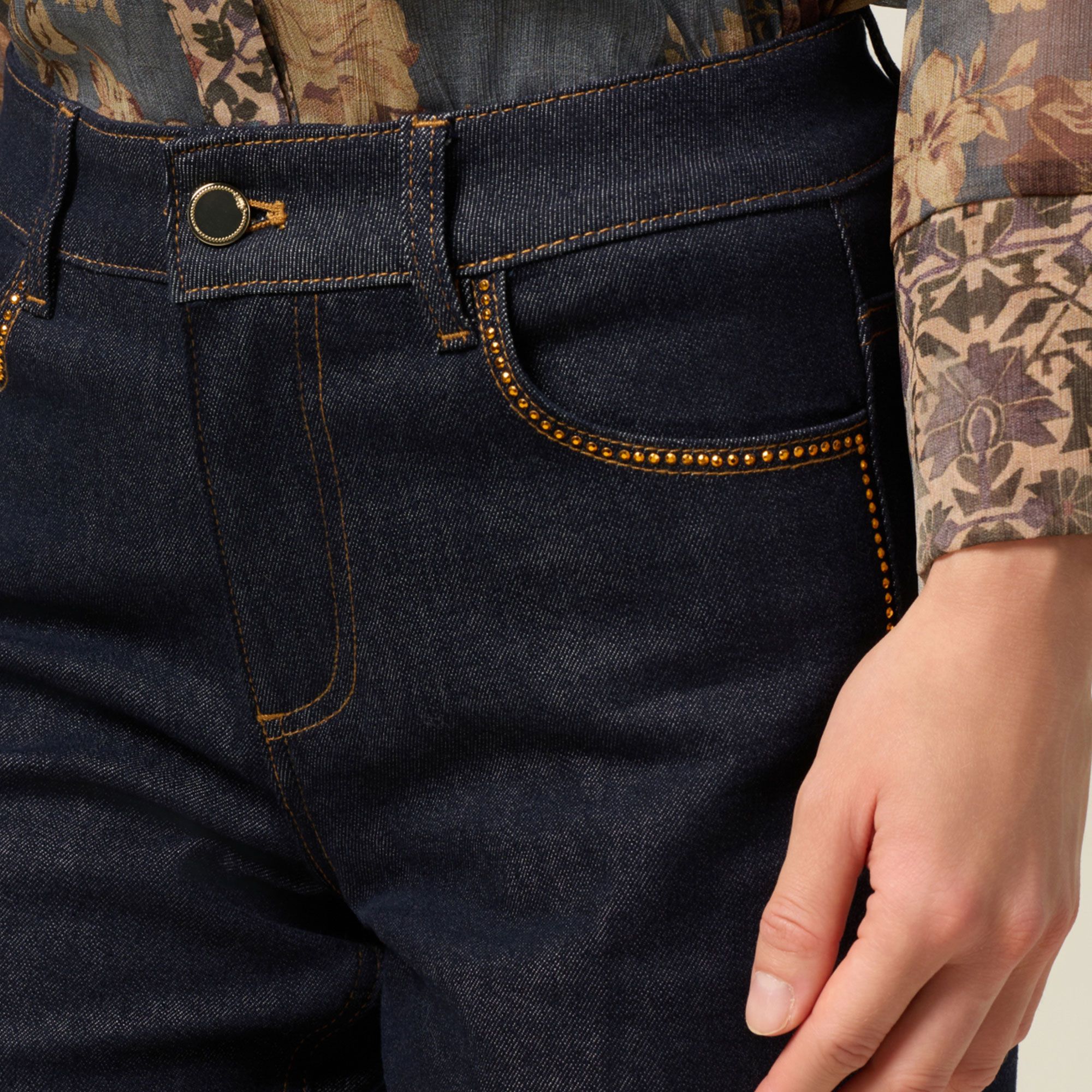 • il dettaglio di strass sui lati gamba illumina il denim con un tocco glamour