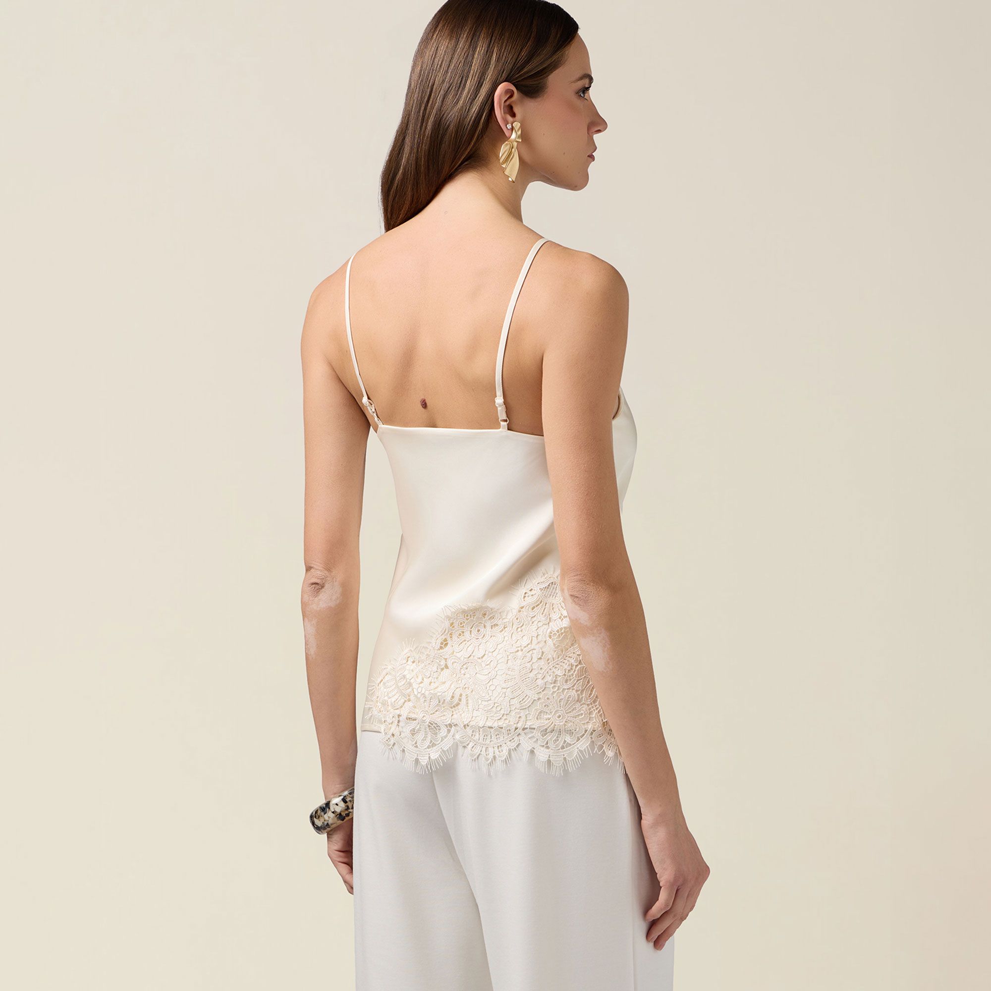 • il raso doppiato e il pizzo tono su tono regalano un fascino raffinato e romantico