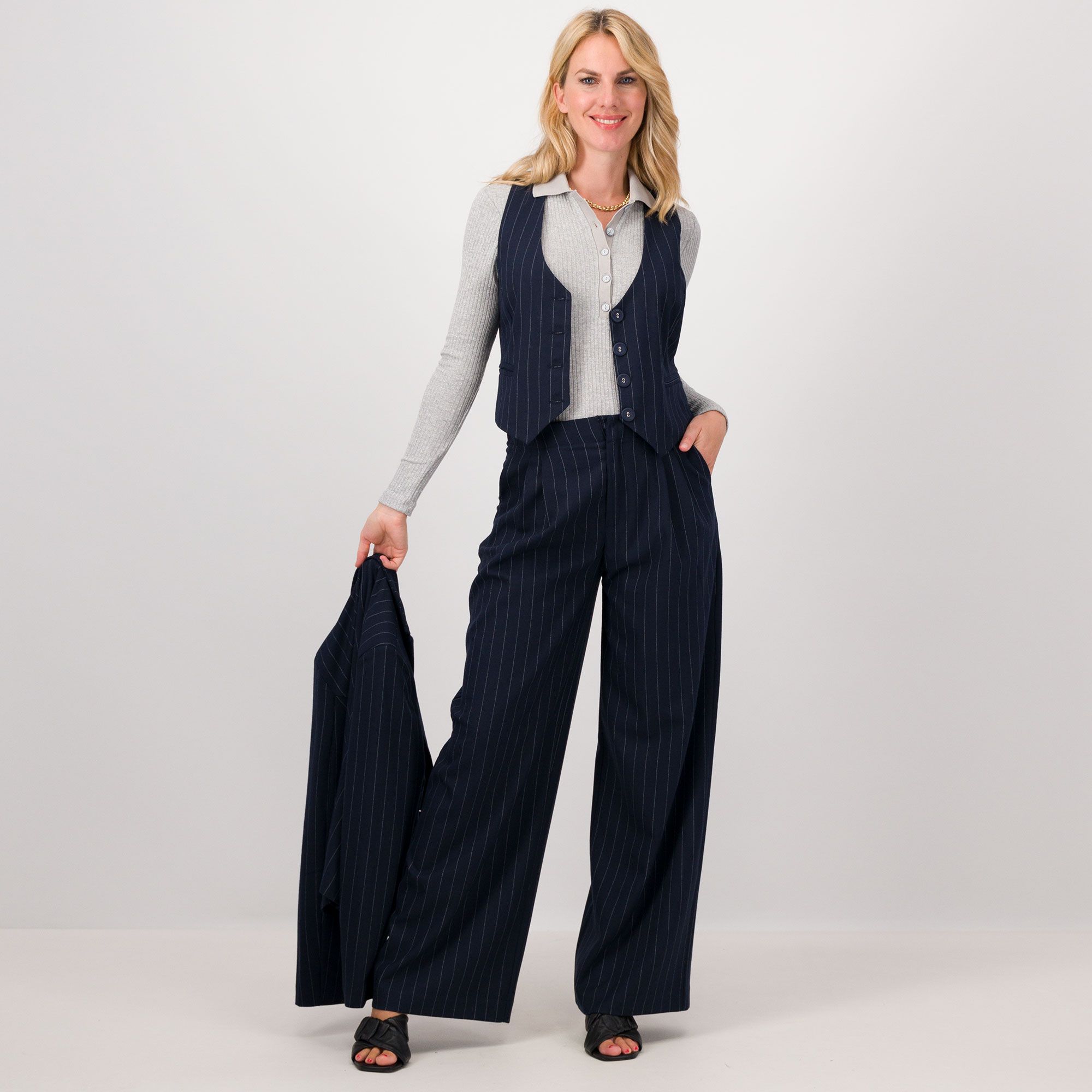 • gilet gessato in misto viscosa
