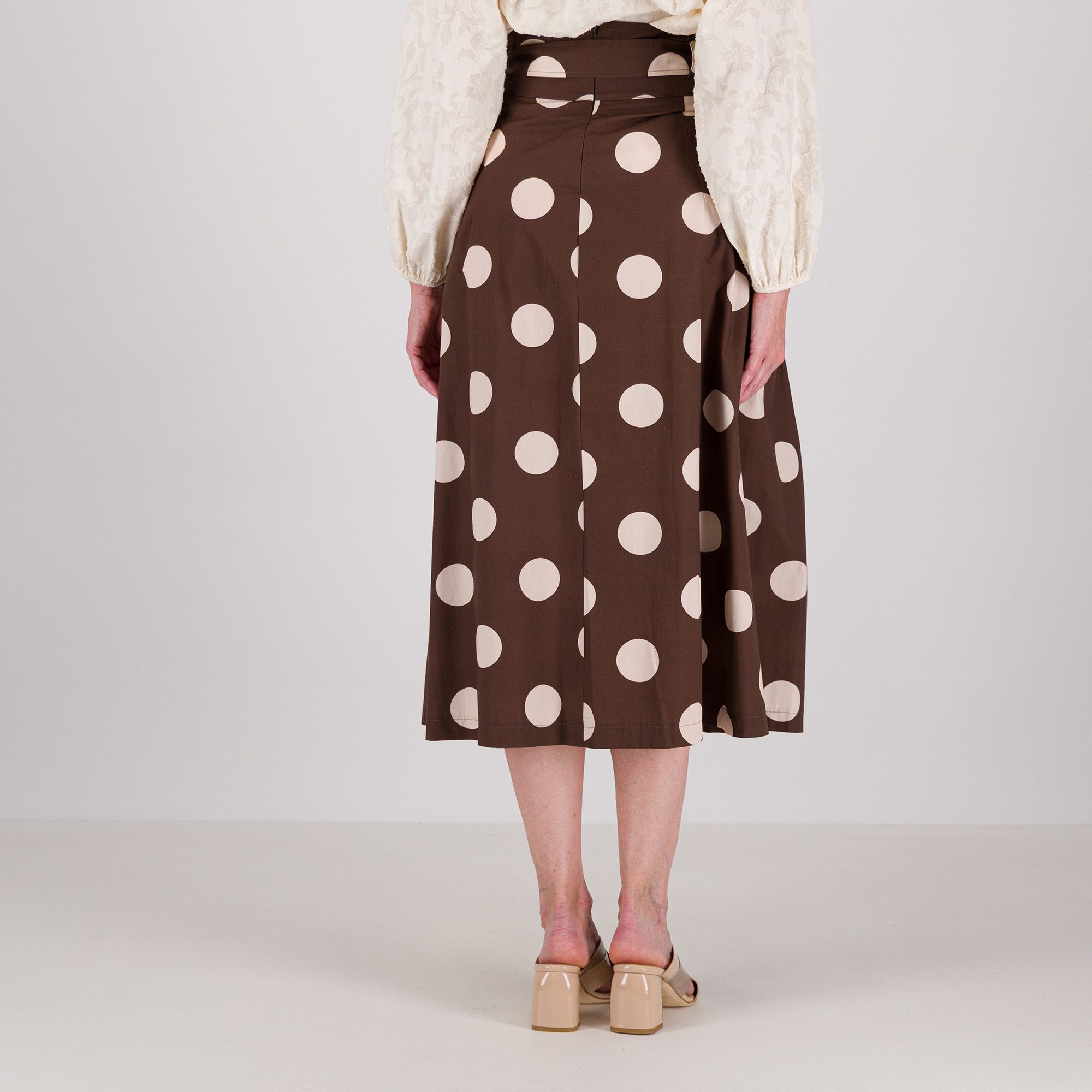 • gonna a pieghe in tela paracadute stretch con fantasia a pois grandi
