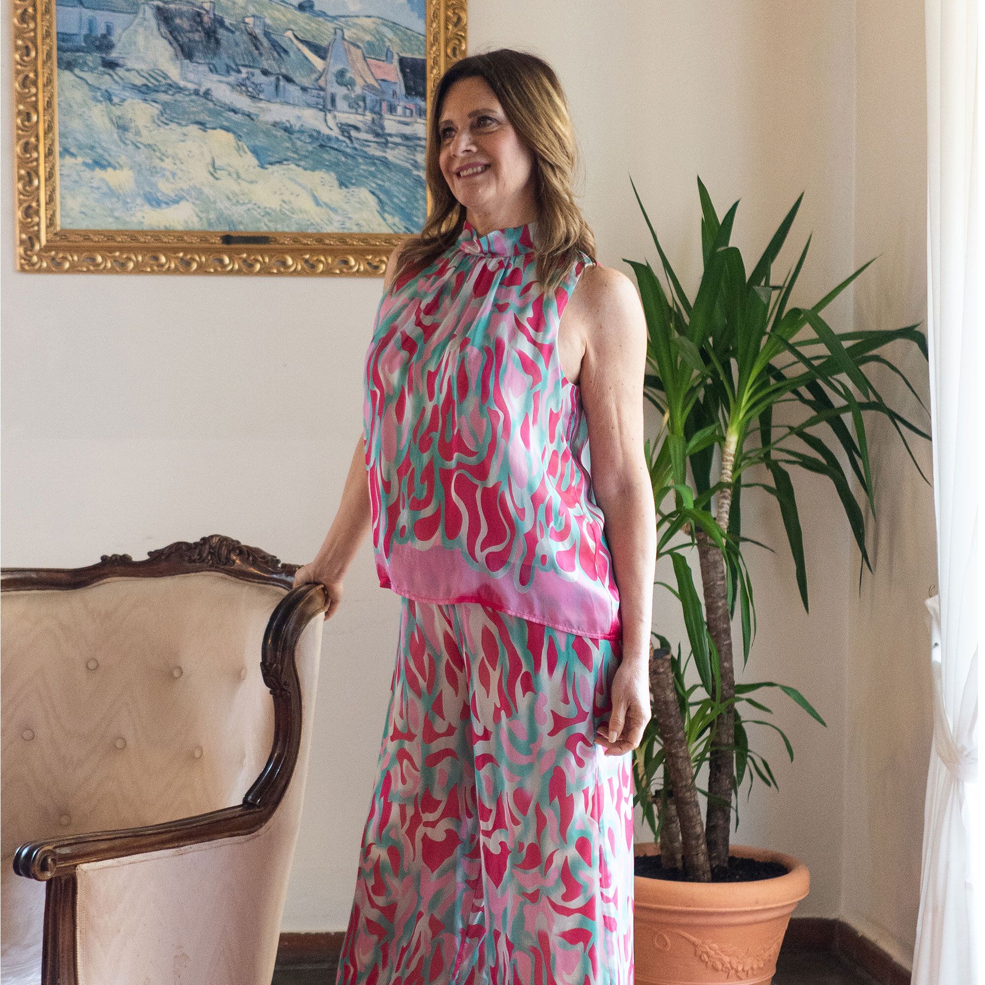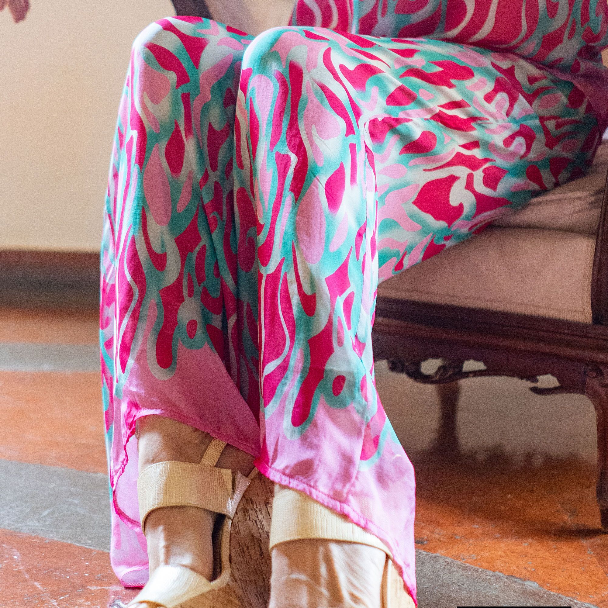 Perfetti per creare un look sofisticato e colorato, questi pantaloni sono l'ideale per un aperitivo al tramonto in spiaggia.