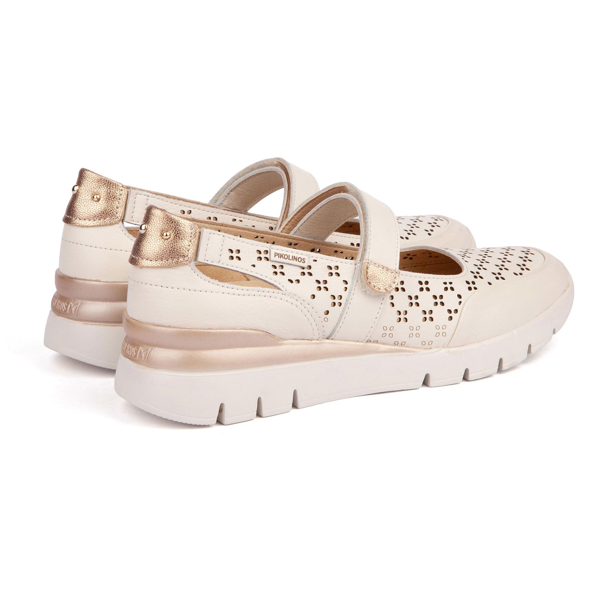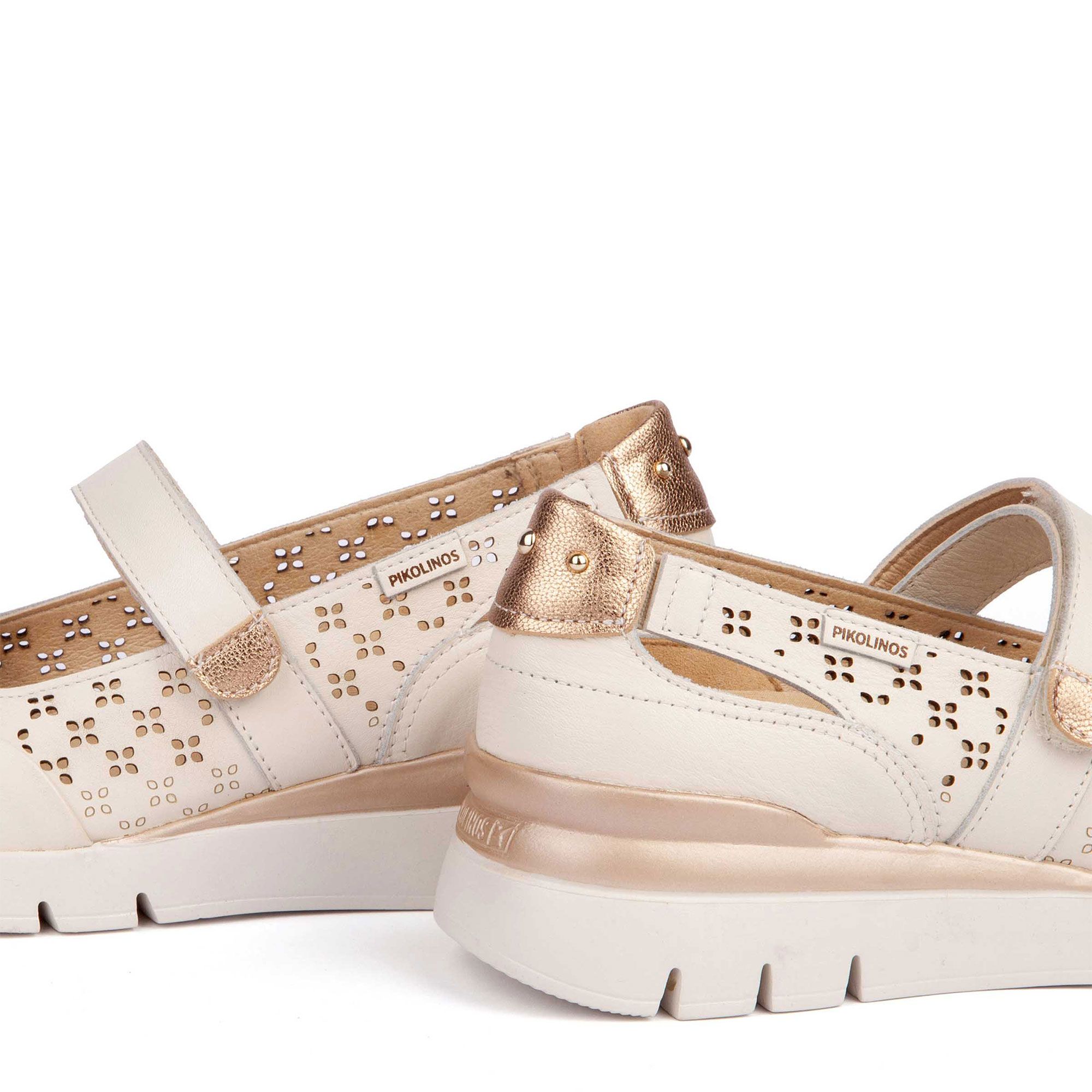 • ballerine Mary Jane in pelle traforata con inserto metallizzato al tallone