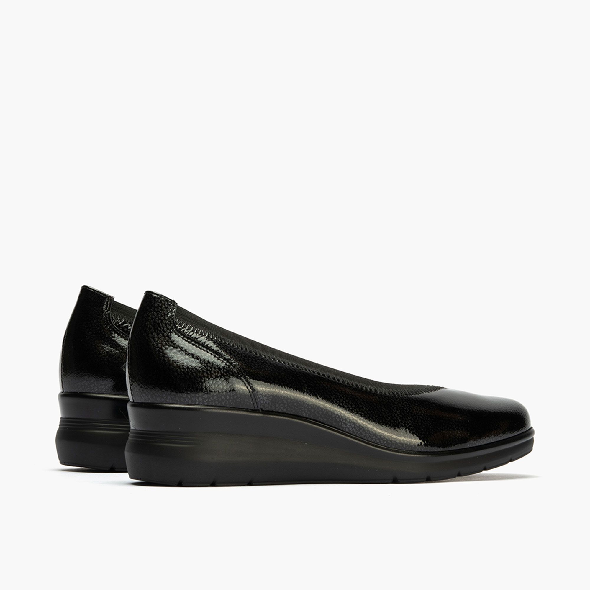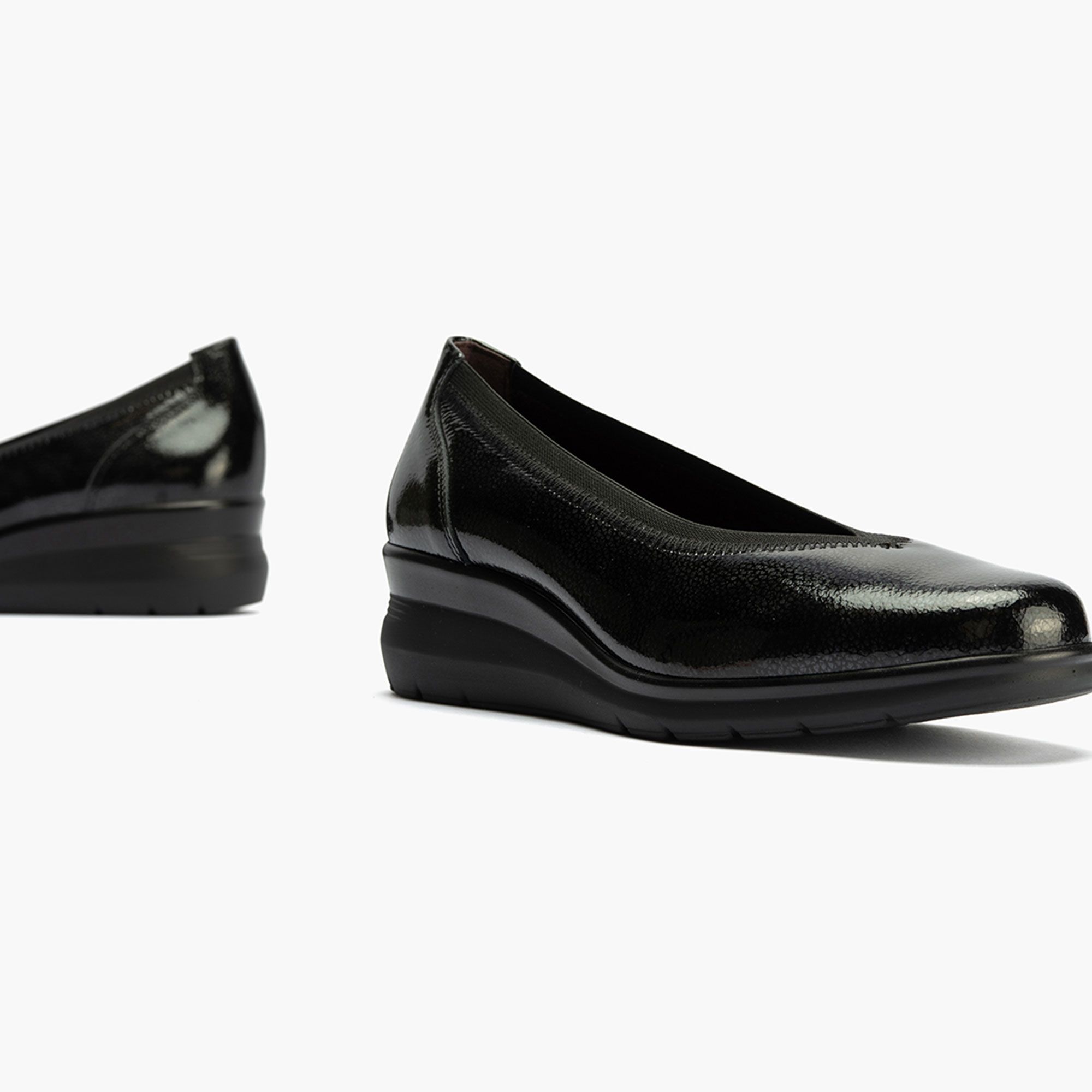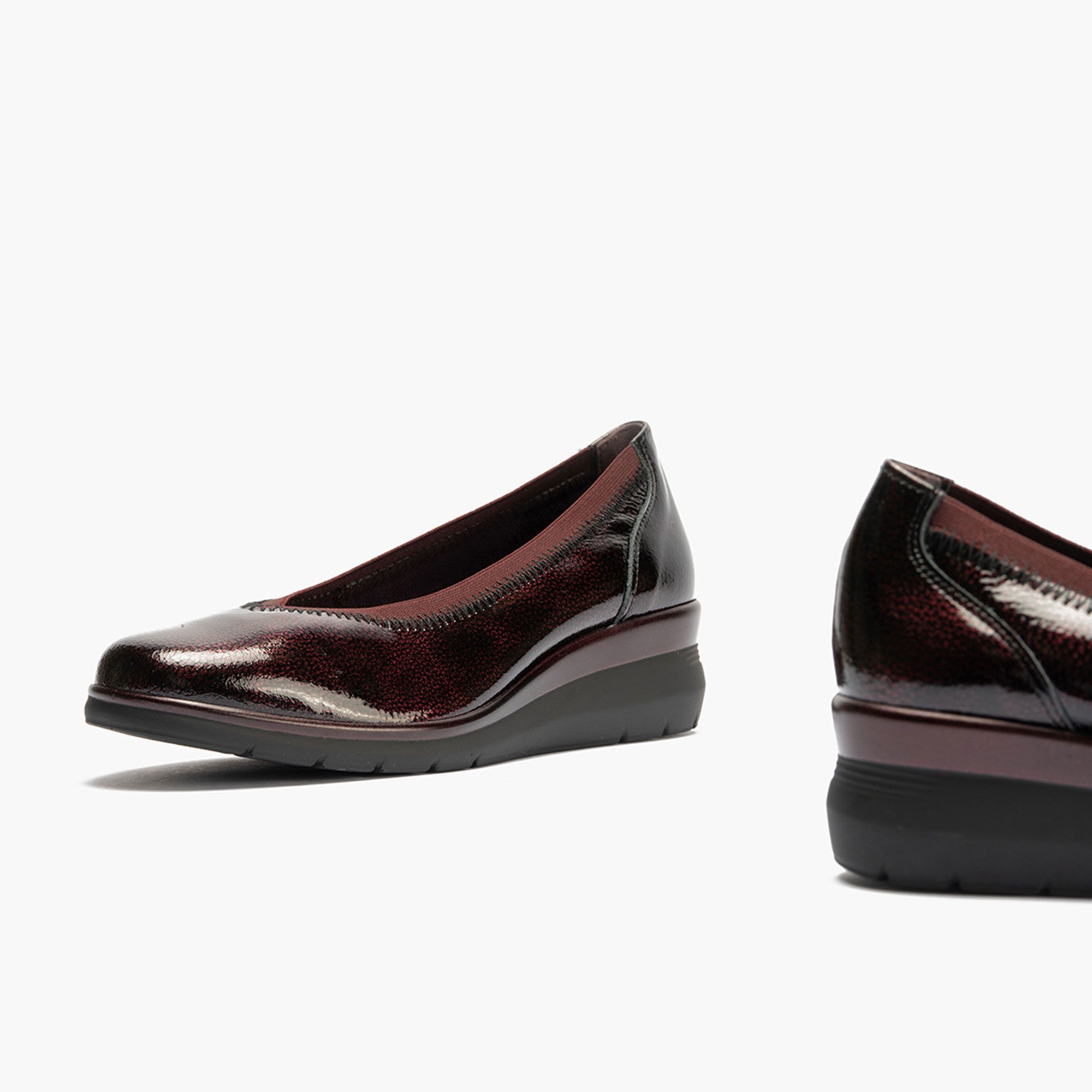 Le ballerine in pelle verniciata sono perfette per aggiungere un tocco chic e moderno ai tuoi look quotidiani. La zeppa discreta offre comfort e stile in ogni occasione.