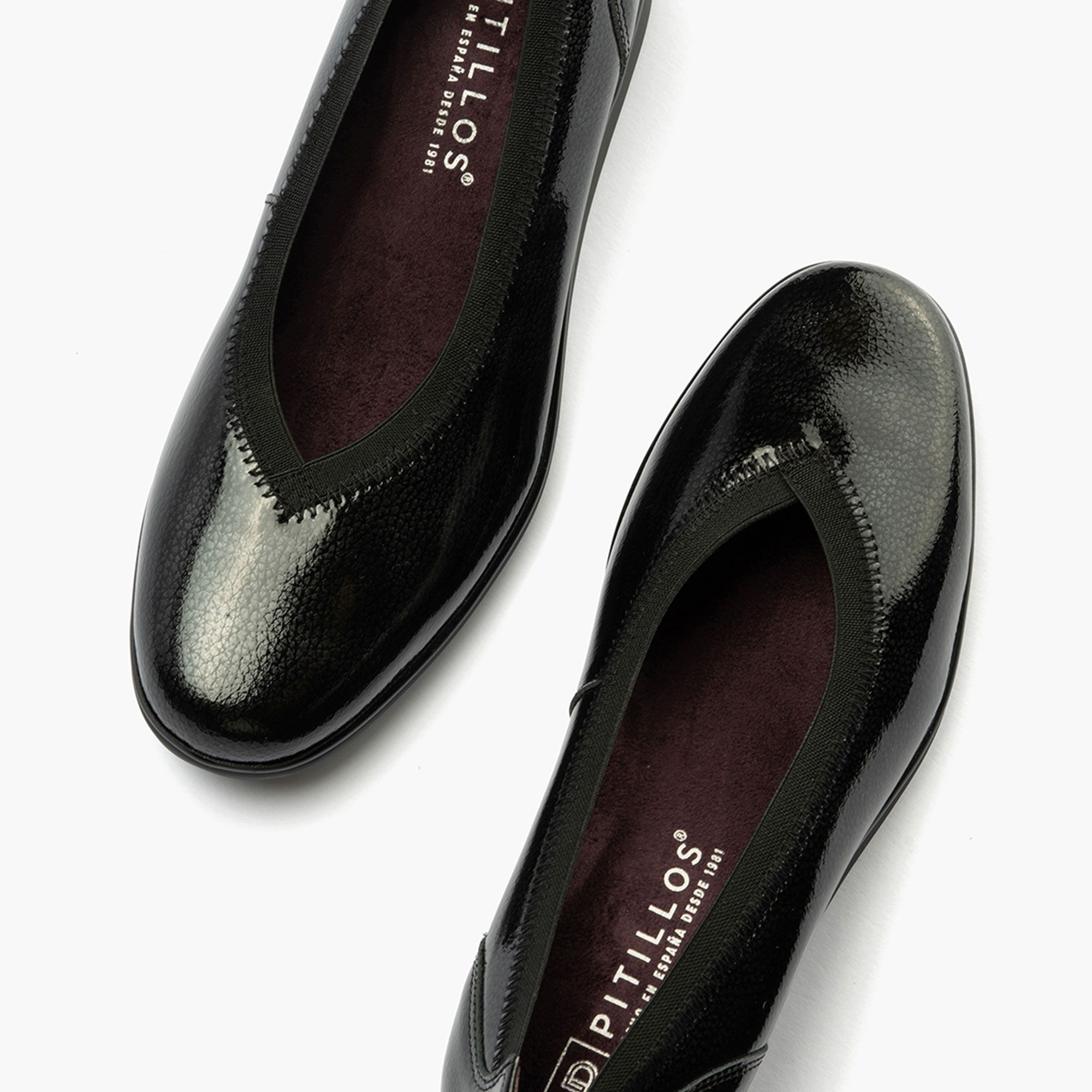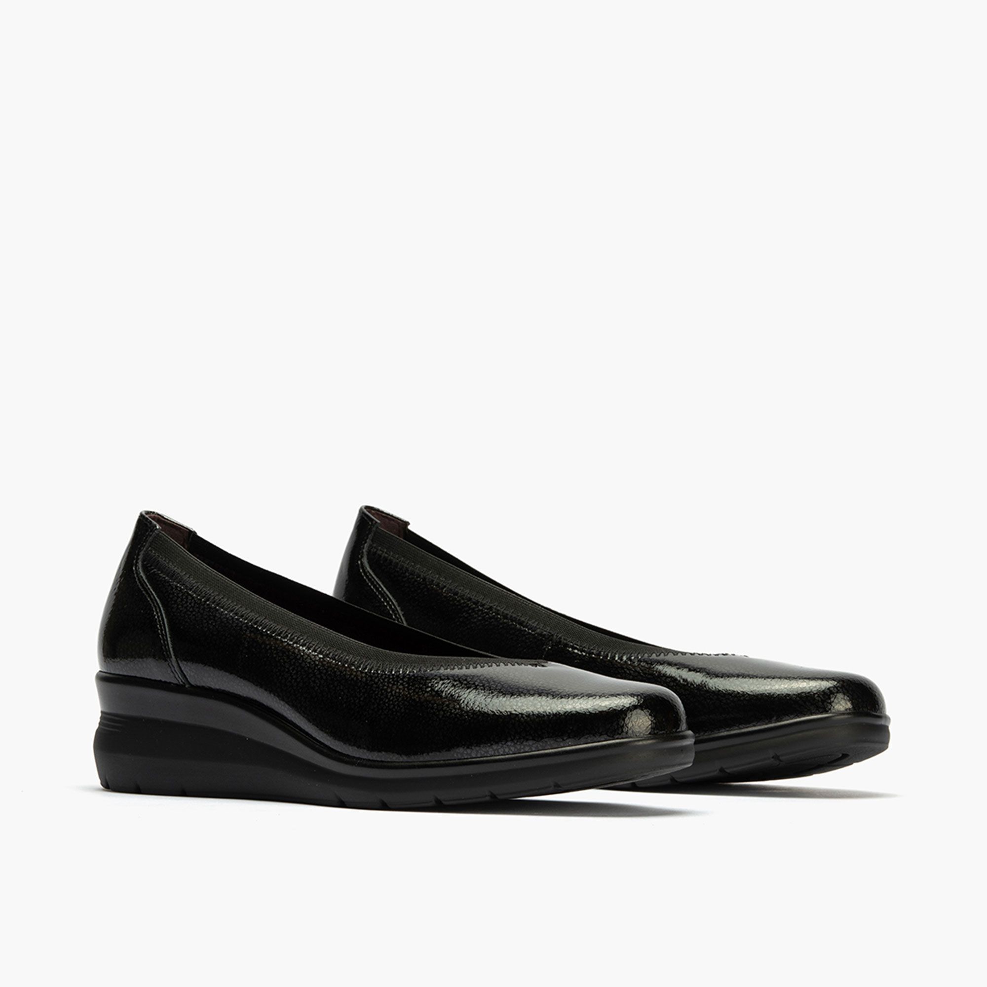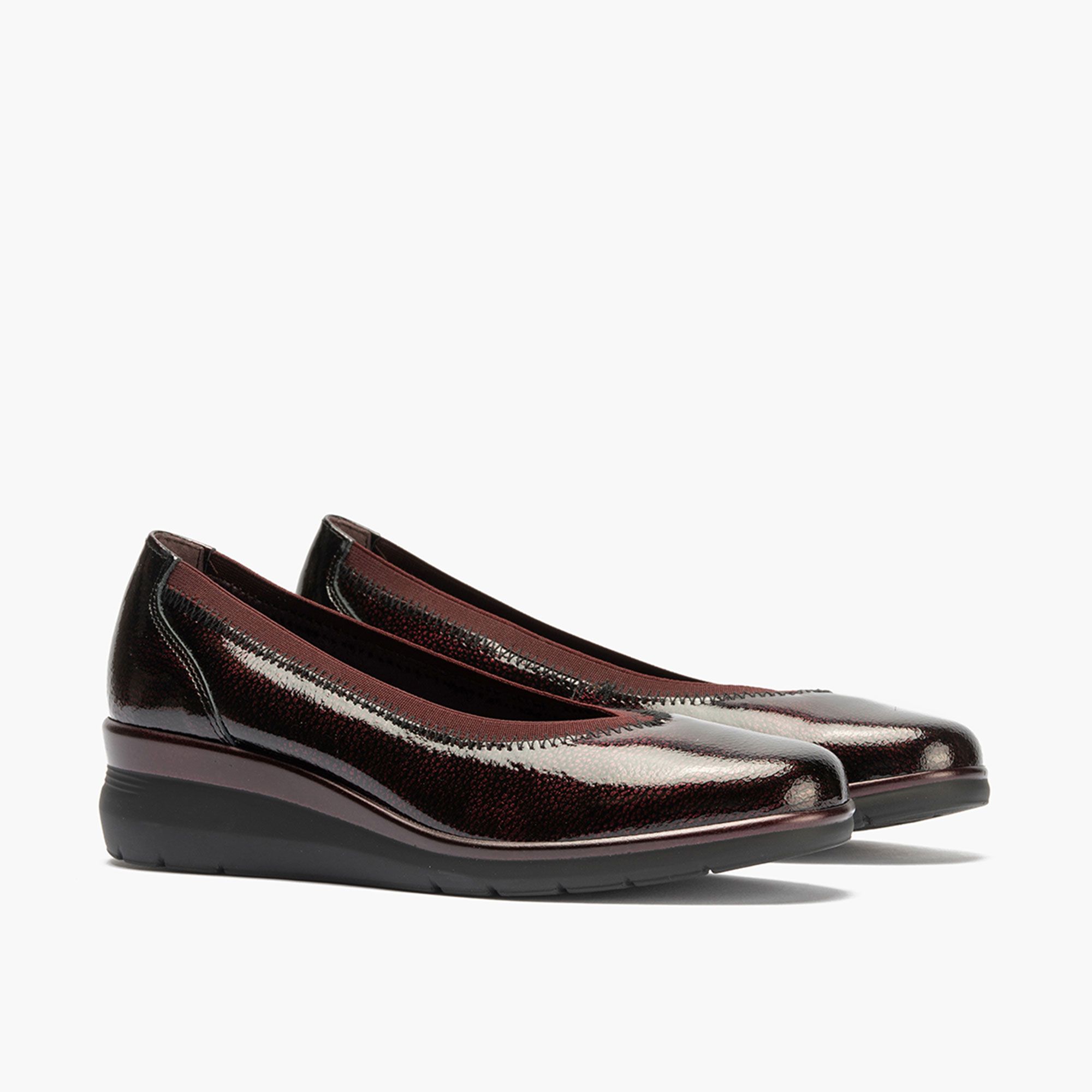 Le ballerine in pelle verniciata sono perfette per aggiungere un tocco chic e moderno ai tuoi look quotidiani. La zeppa discreta offre comfort e stile in ogni occasione.