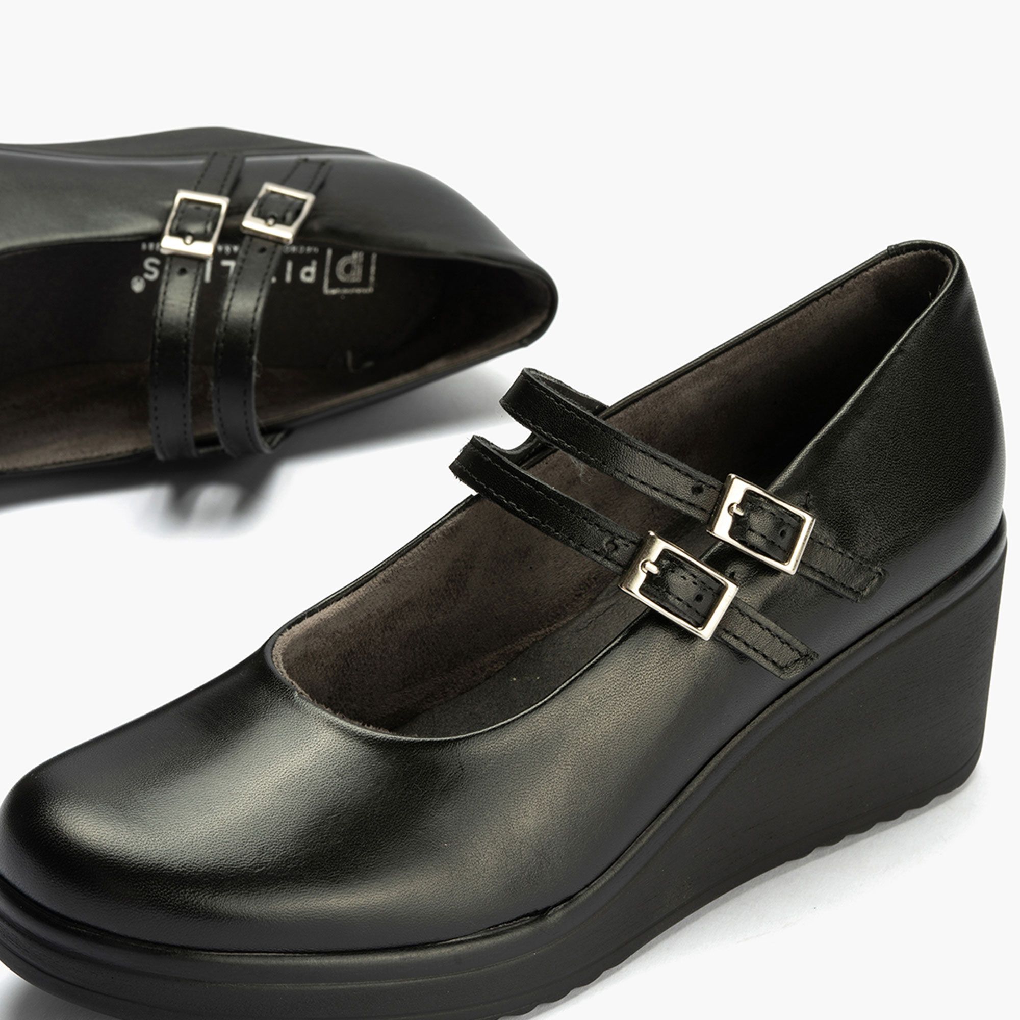 Le Mary Jane Pitillos sono ideali per aggiungere un tocco retrò e femminile ai tuoi look quotidiani. Il doppio cinturino e la zeppa offrono comfort e stile in ogni occasione.