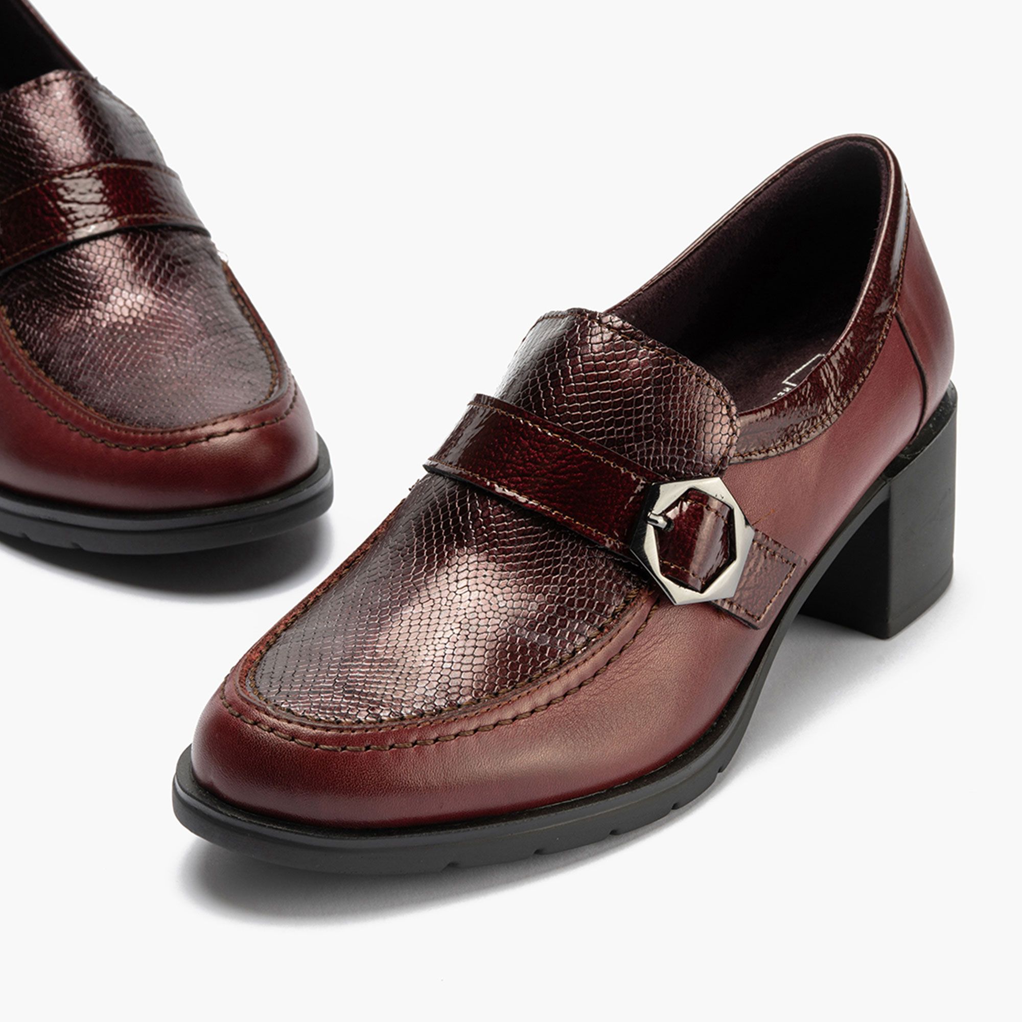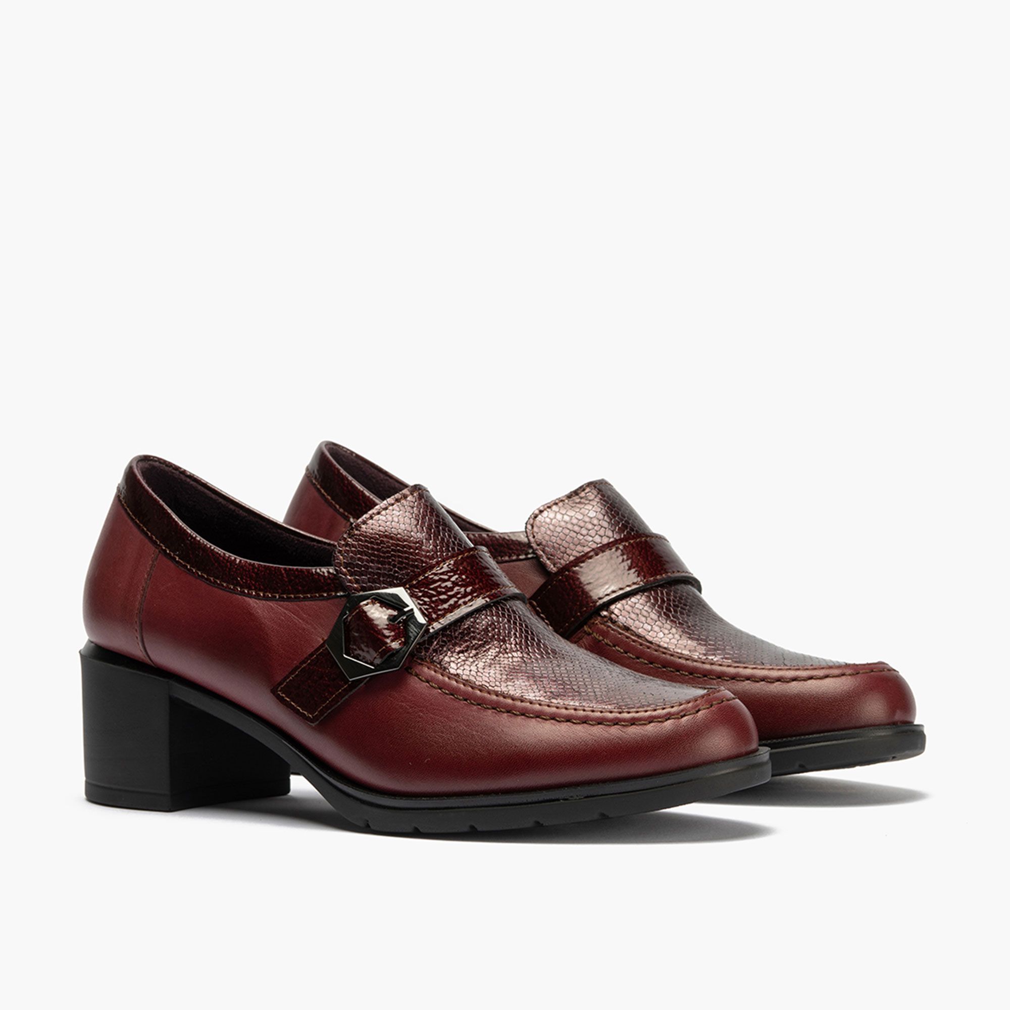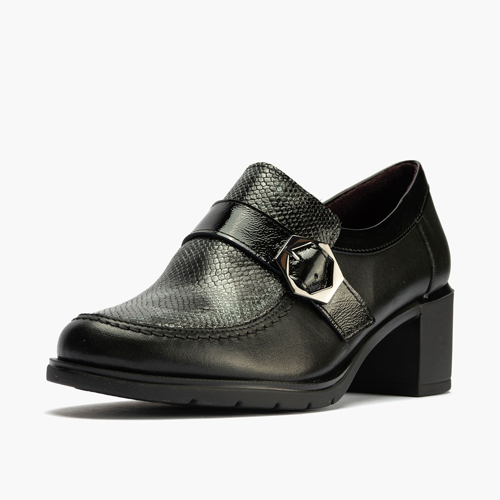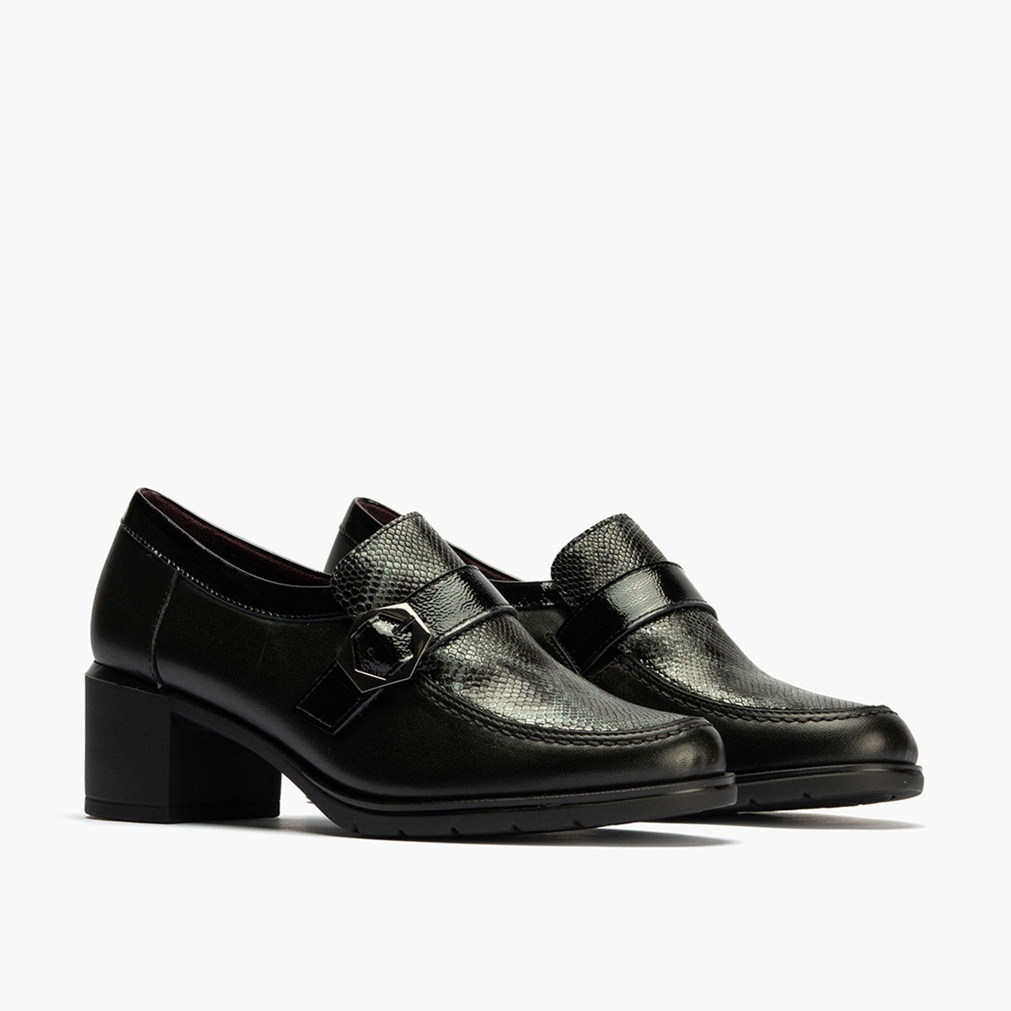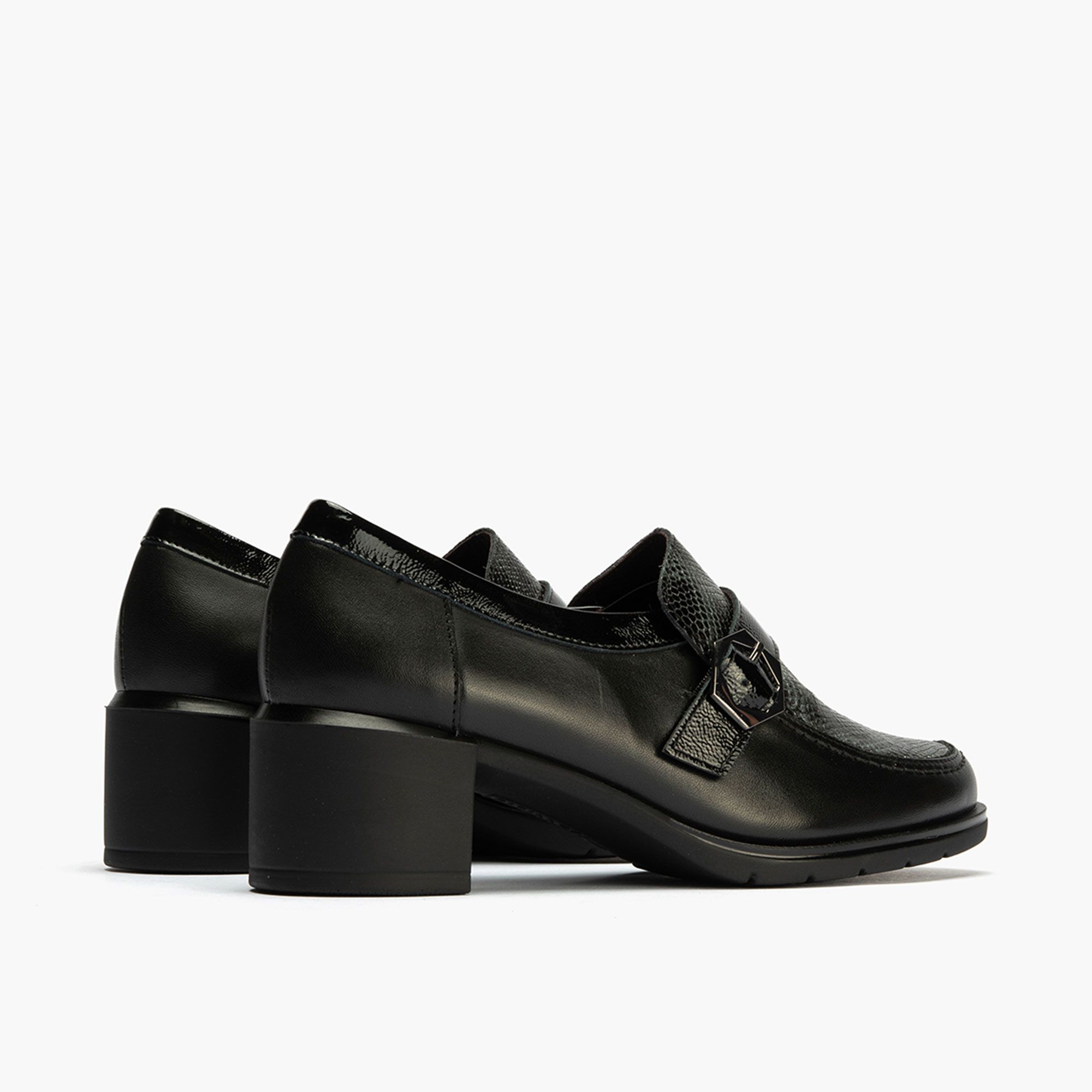 Questi mocassini uniscono eleganza e comfort grazie alla tomaia in pelle lavorata e al tacco quadrato, perfetti per completare look sofisticati da giorno e da sera.
