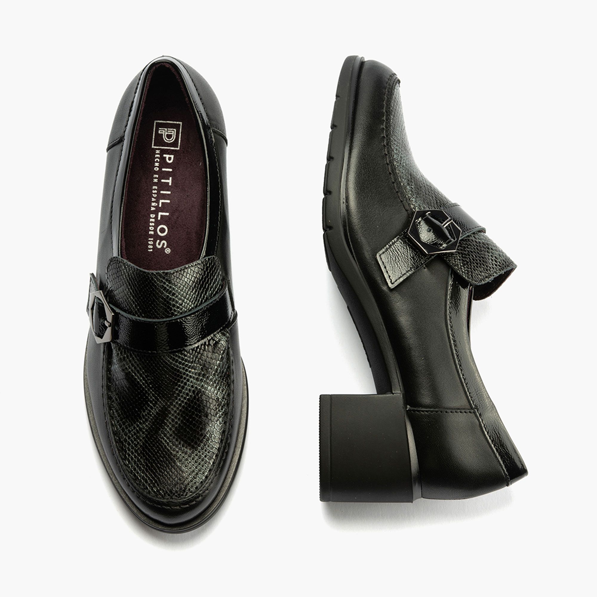 • mocassini in pelle con tomaia alternata in nappa, stampa rettile e verniciata