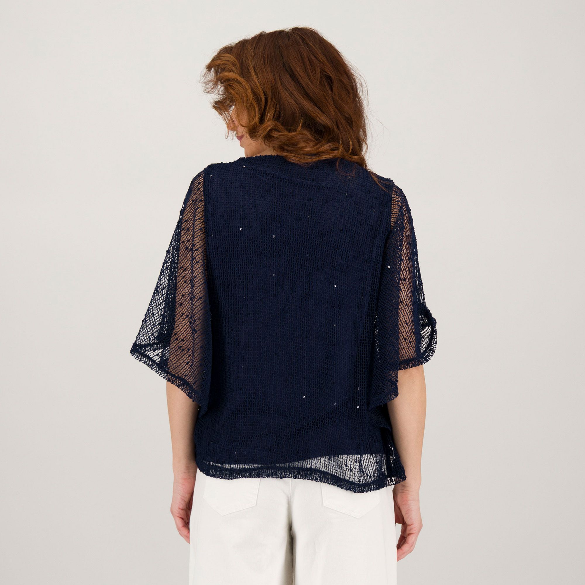 • blusa in tessuto a rete con paillettes