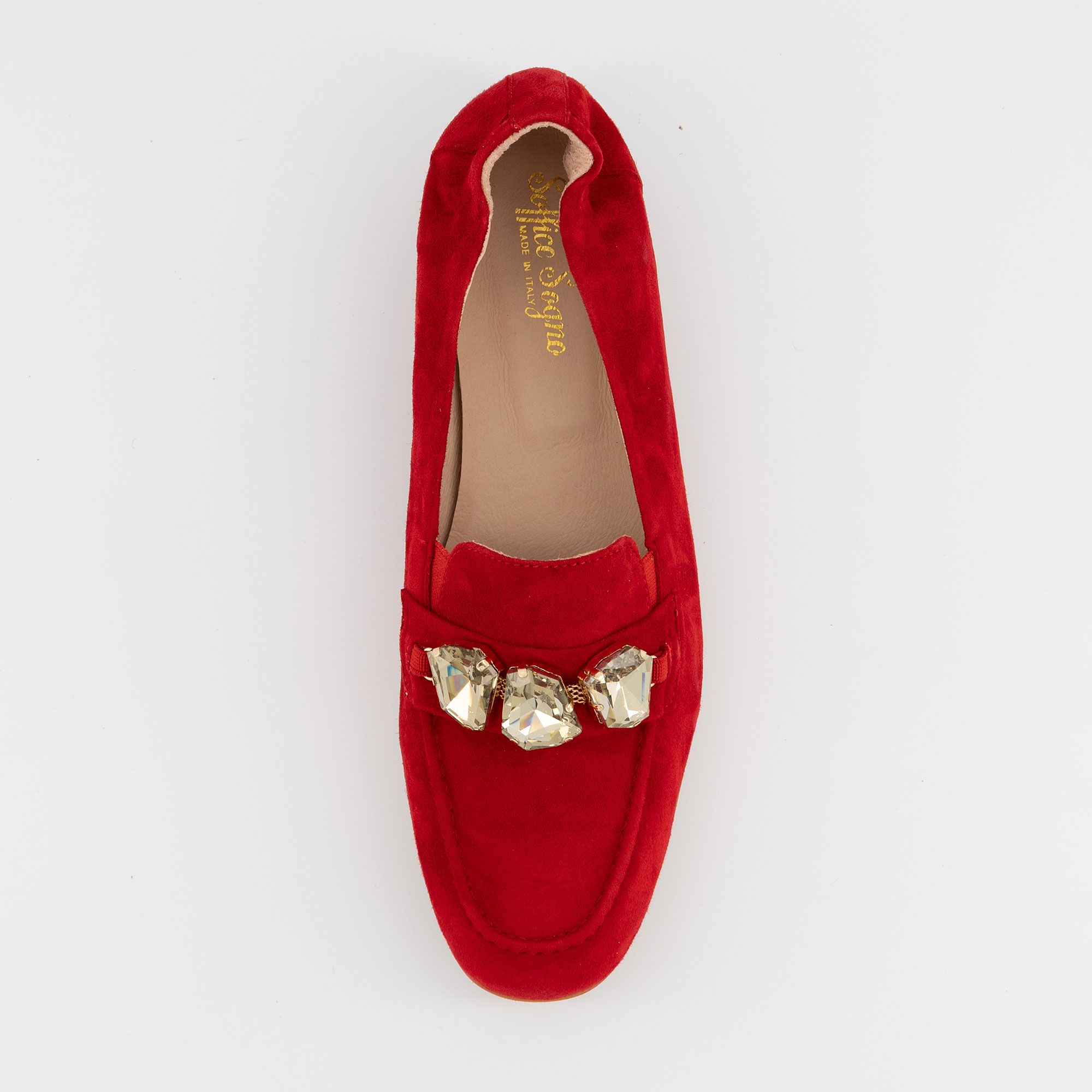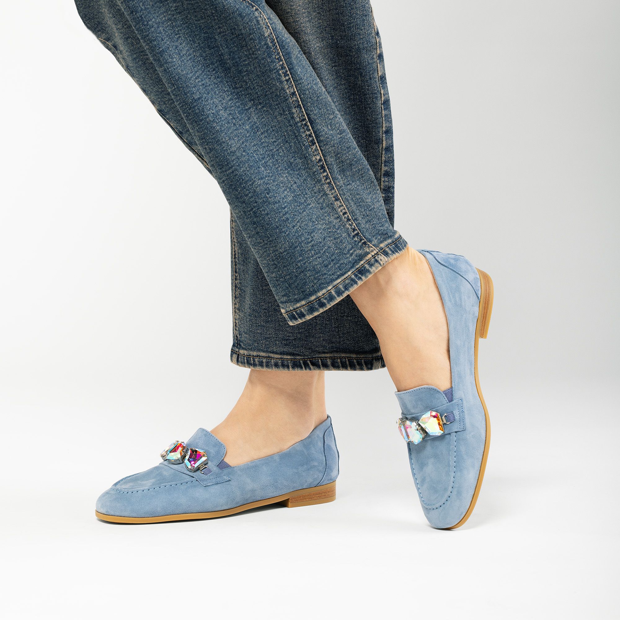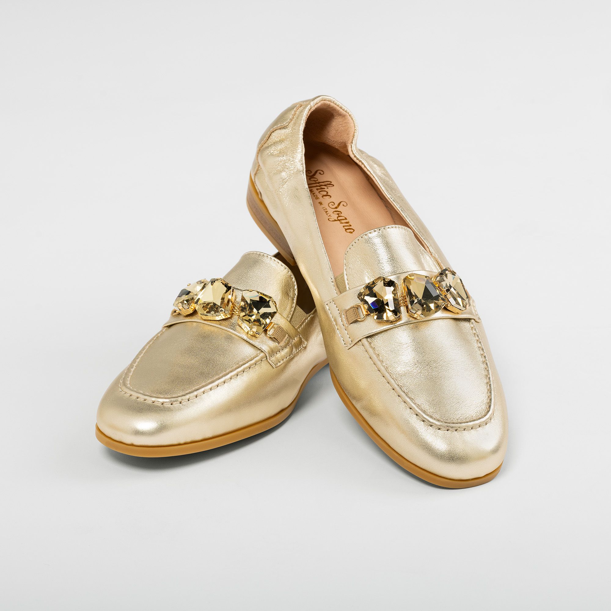 • mocassini in pelle con fascetta frontale impreziosita da accessorio gioiello