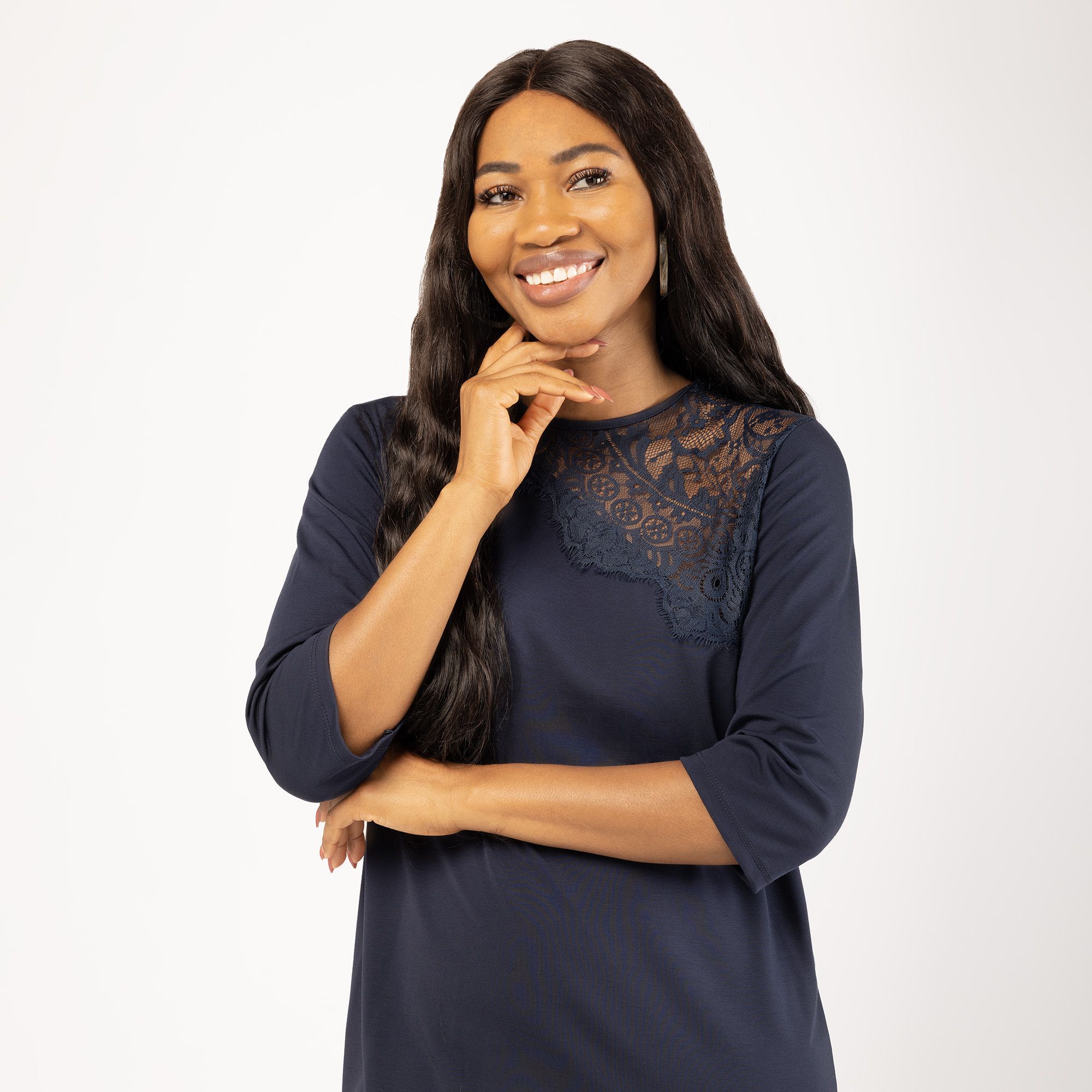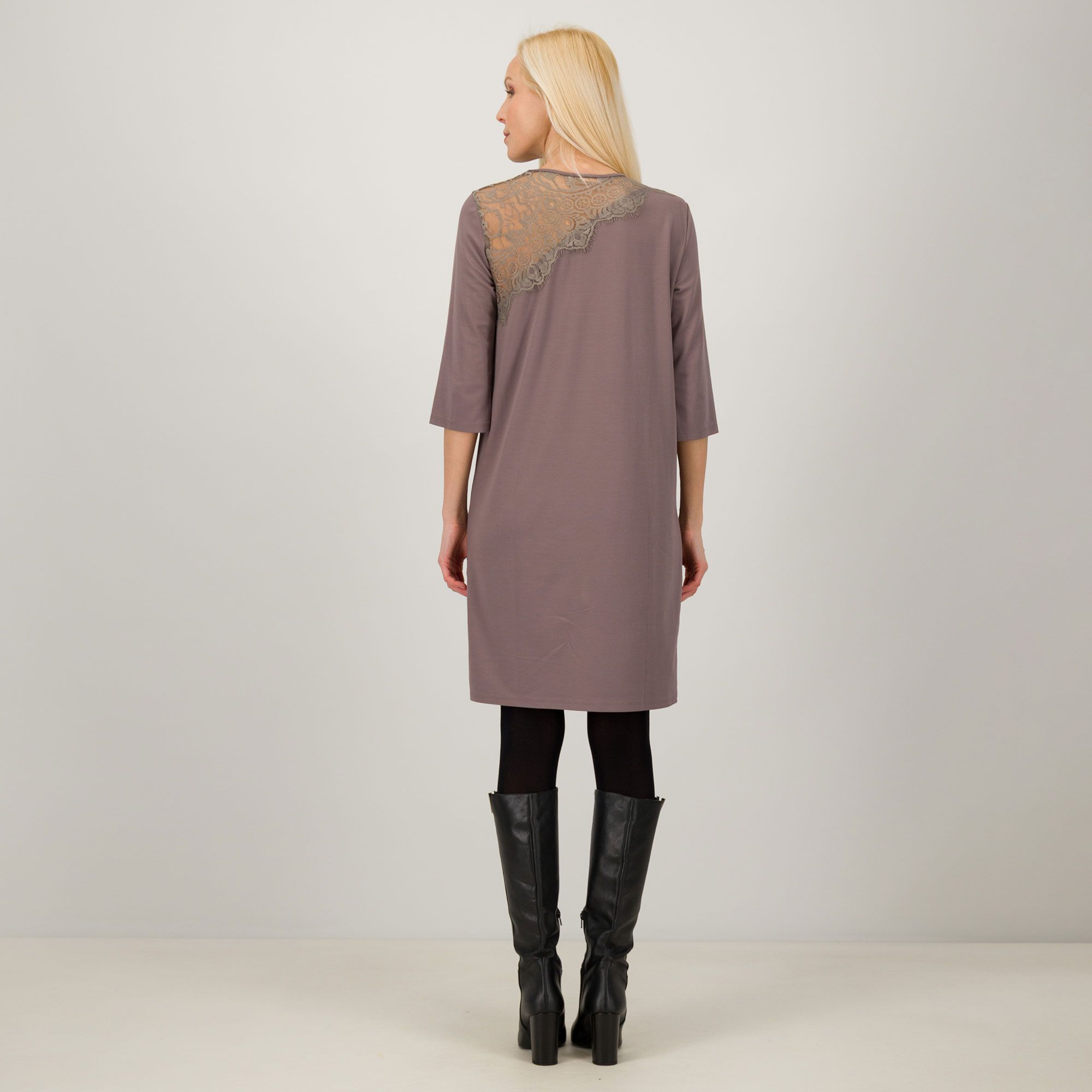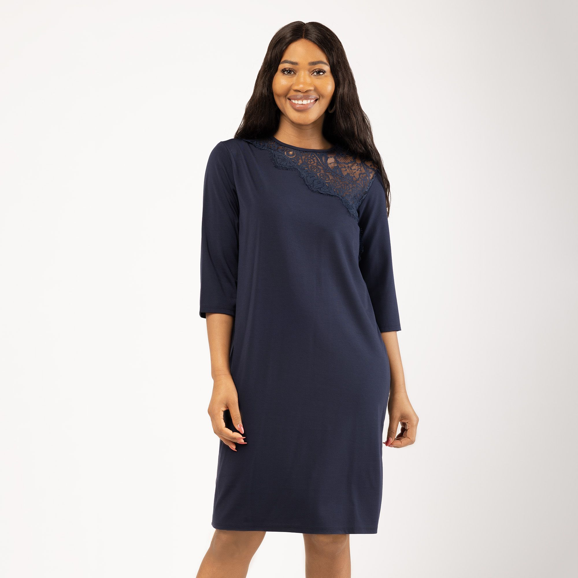 • il taglio a sacchetto e il dettaglio in pizzo sulla spalla donano un tocco raffinato e femminile
