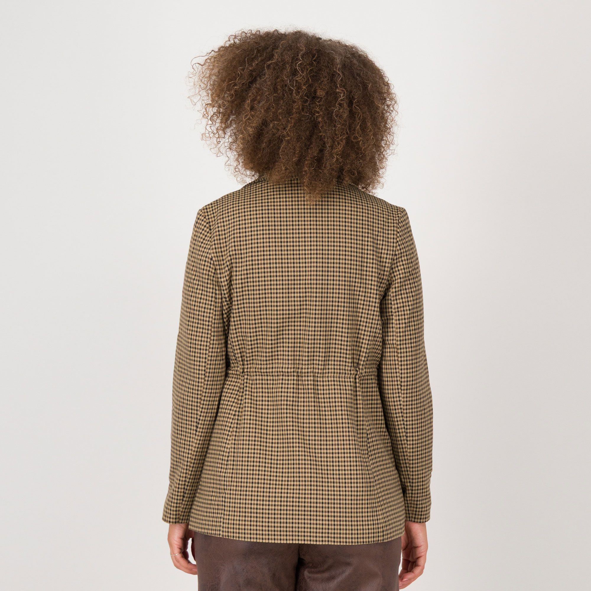 • il motivo a quadri abbinato ai dettagli scamosciati dona un tocco di stile contemporaneo