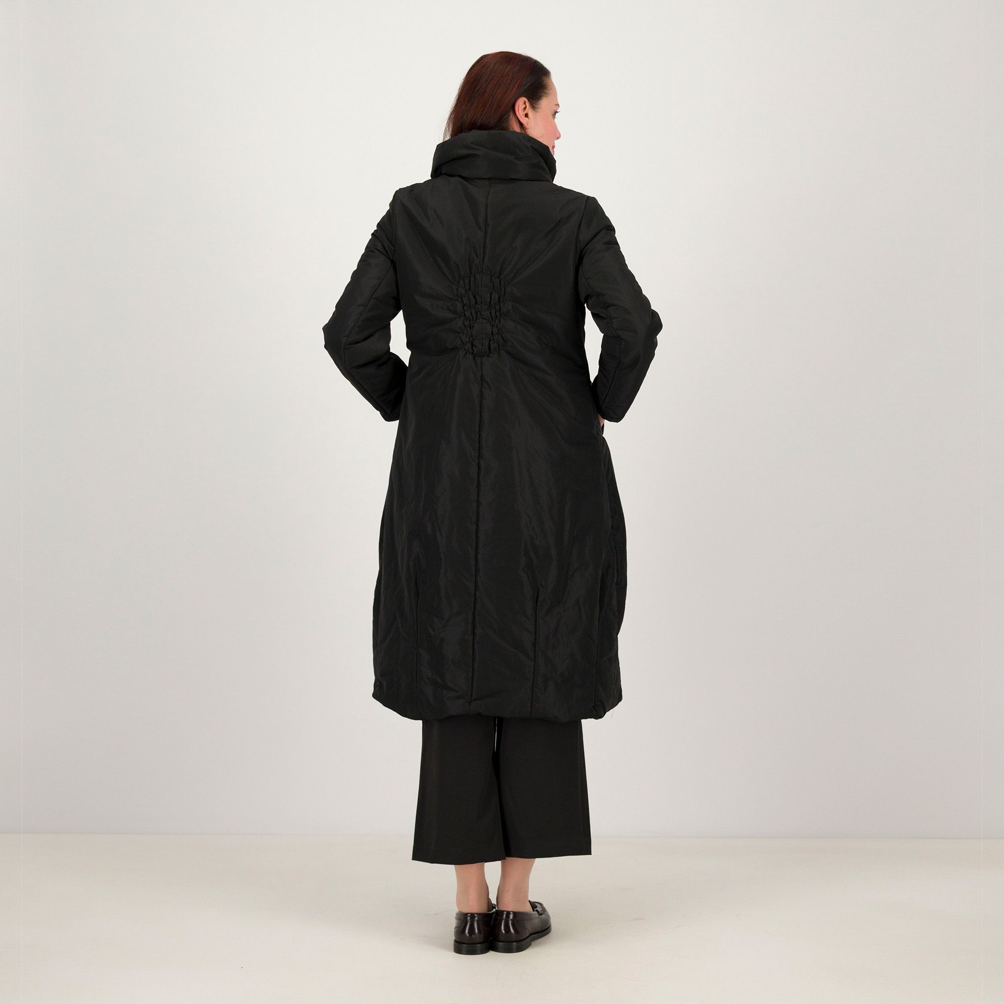 • vestibilità regolare: zona superiore più asciutta, delicatamente delineato il punto vita con punto smock al centro dietro, design ampio al fondo, tessuto voluminoso e fermo
