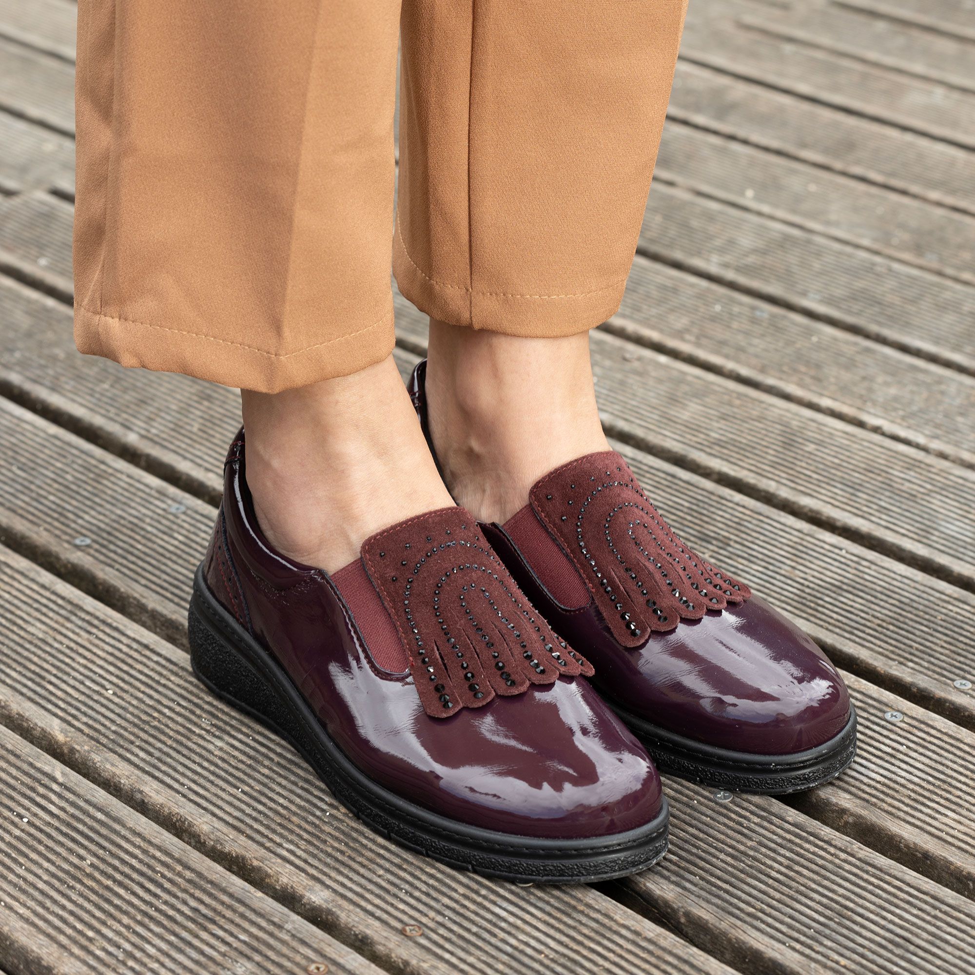 Questi mocassini uniscono eleganza e comfort, grazie ai dettagli preziosi e alla predisposizione per plantare personalizzato, ideali per un look ricercato ogni giorno.