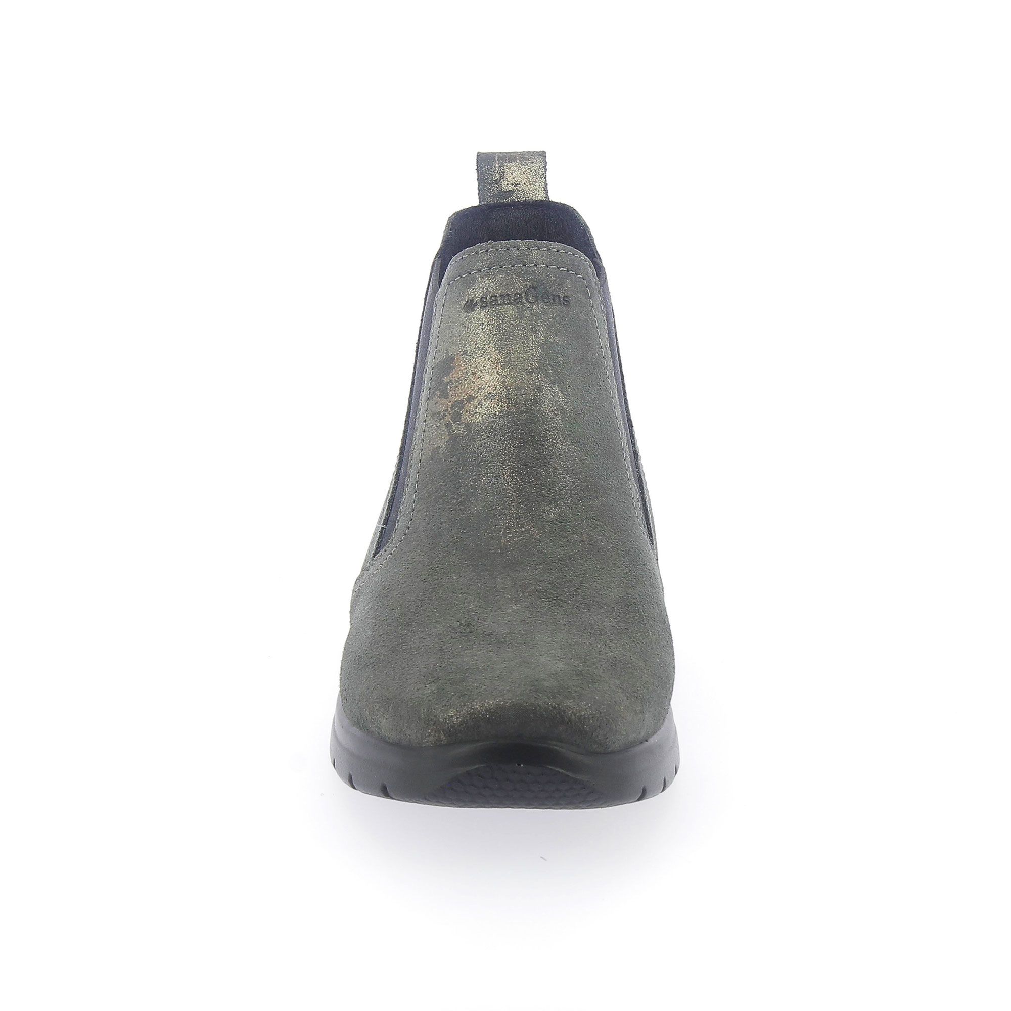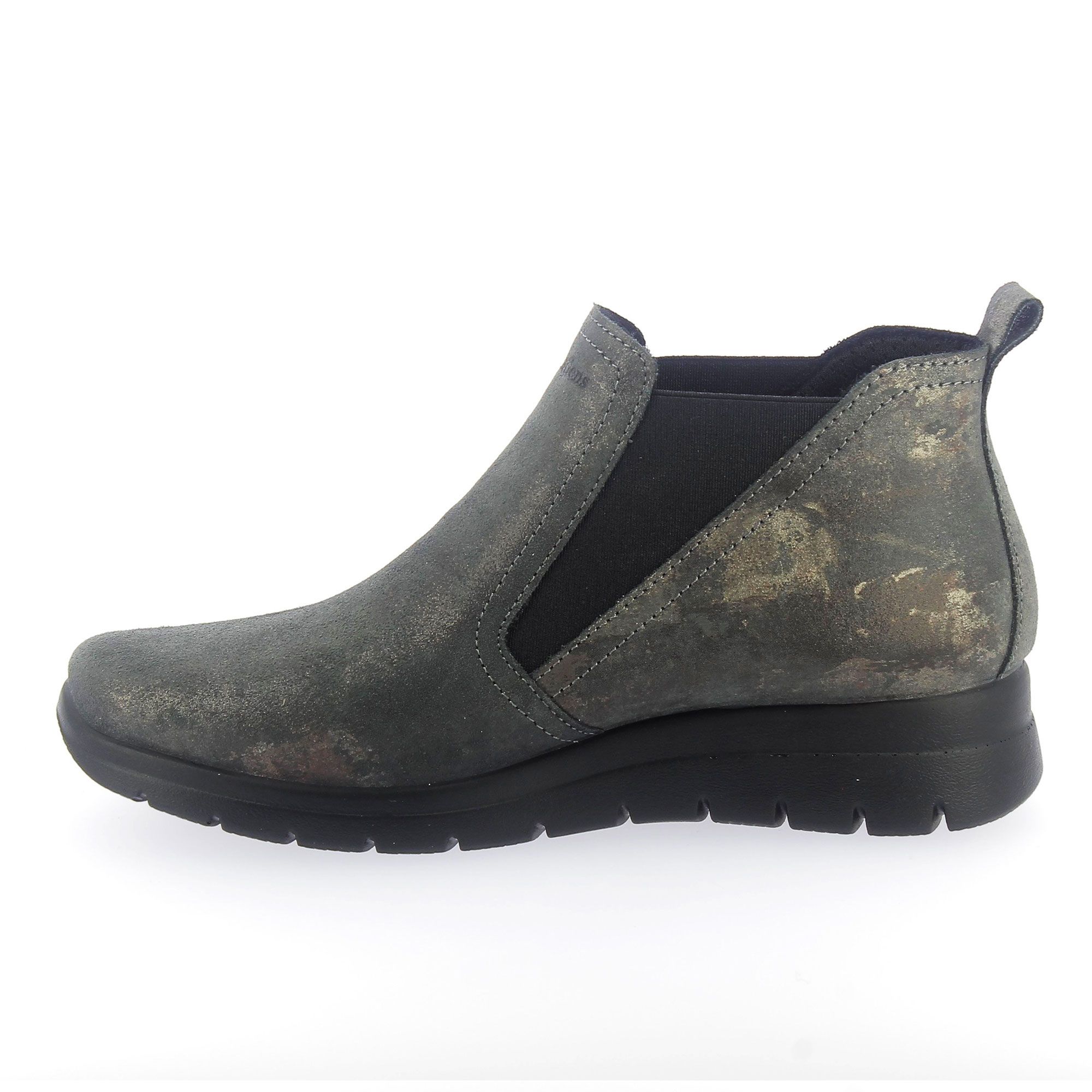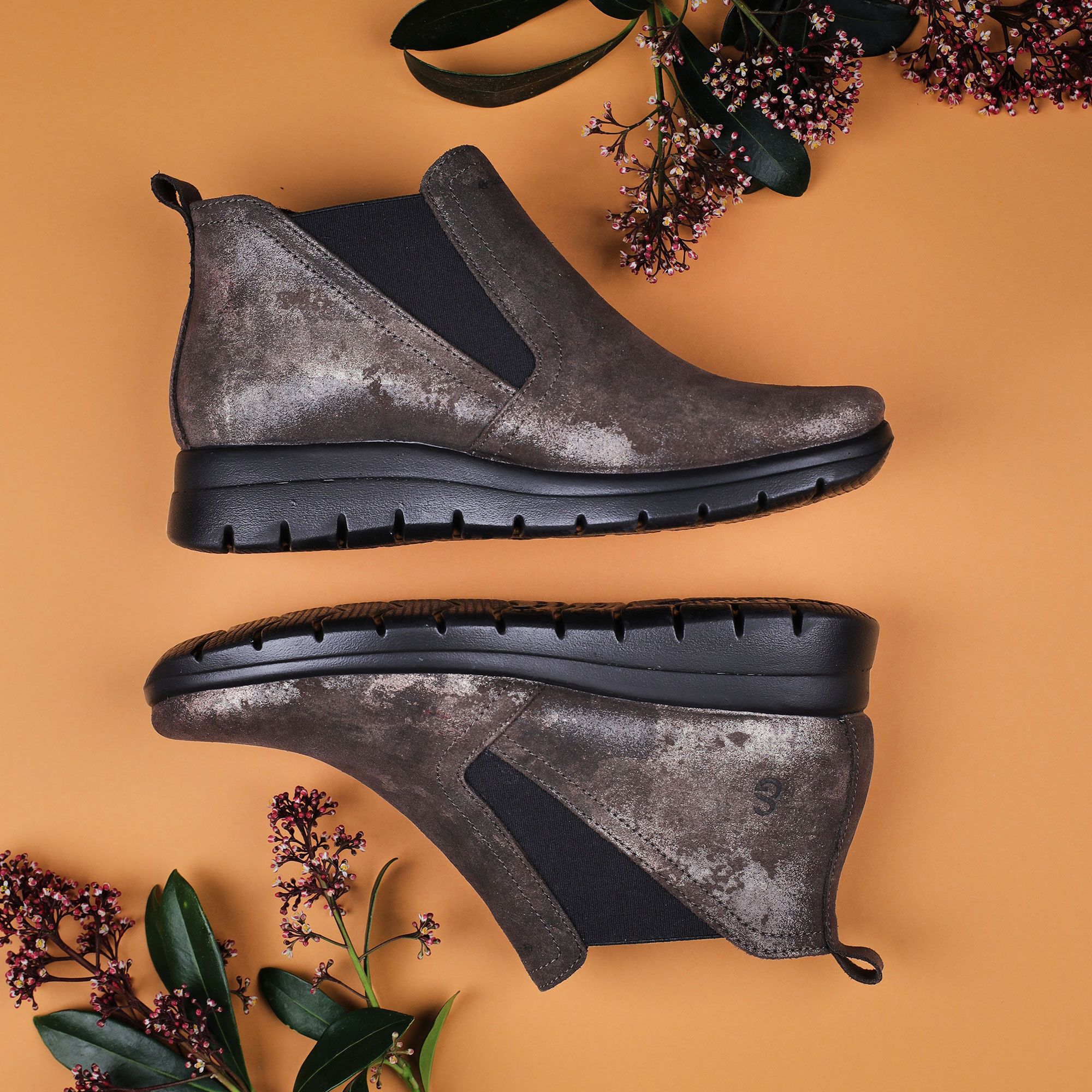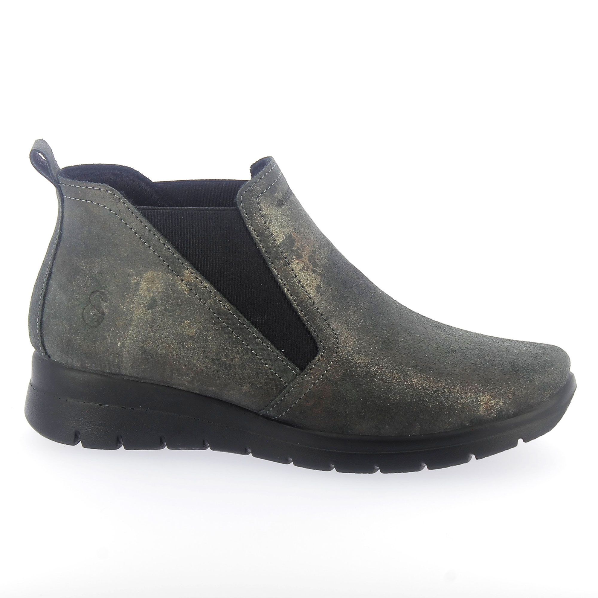 Questi tronchetti uniscono comfort e stile grazie alla pelle scamosciata metallizzata e agli inserti elastici, ideali per dare un tocco originale ai tuoi look quotidiani.