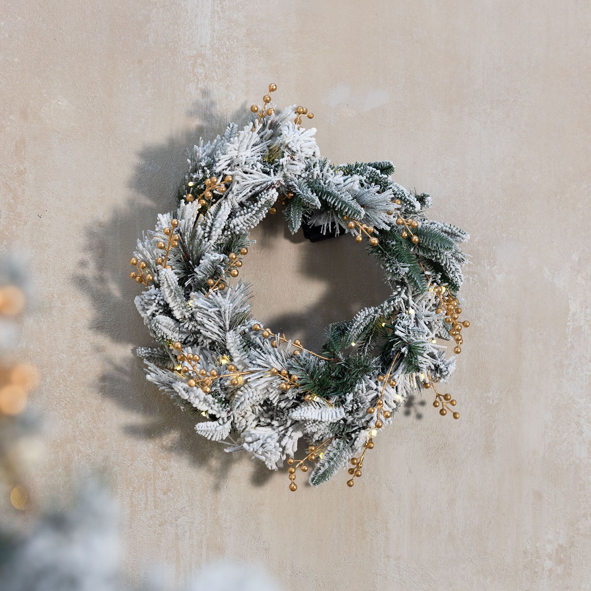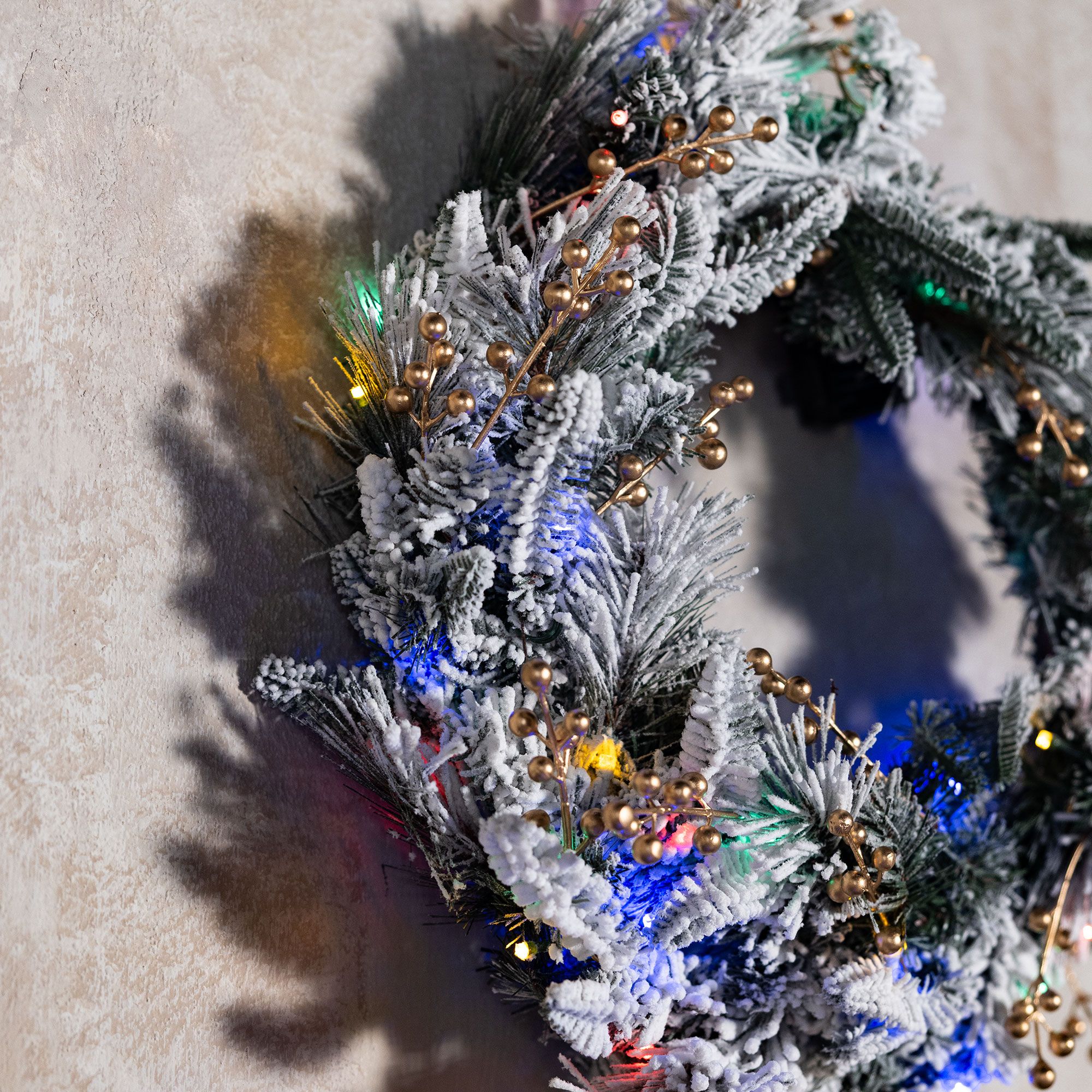 • ghirlanda o corona Winterlux pre-illuminata con luci LED e bacche rosse