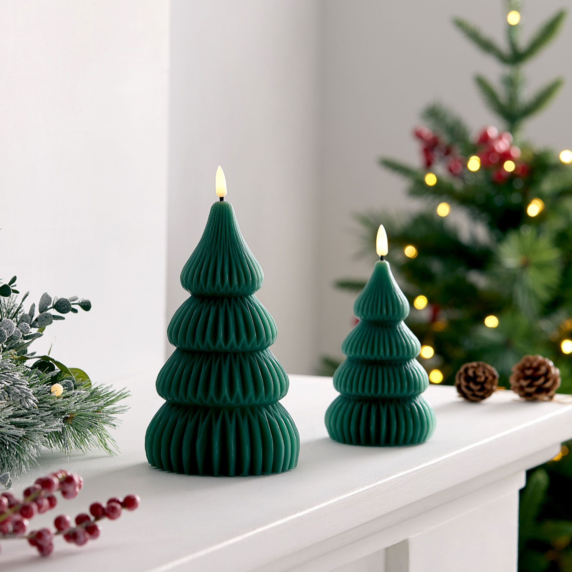 Set di 2 candele LED a forma di albero di Natale composto da: