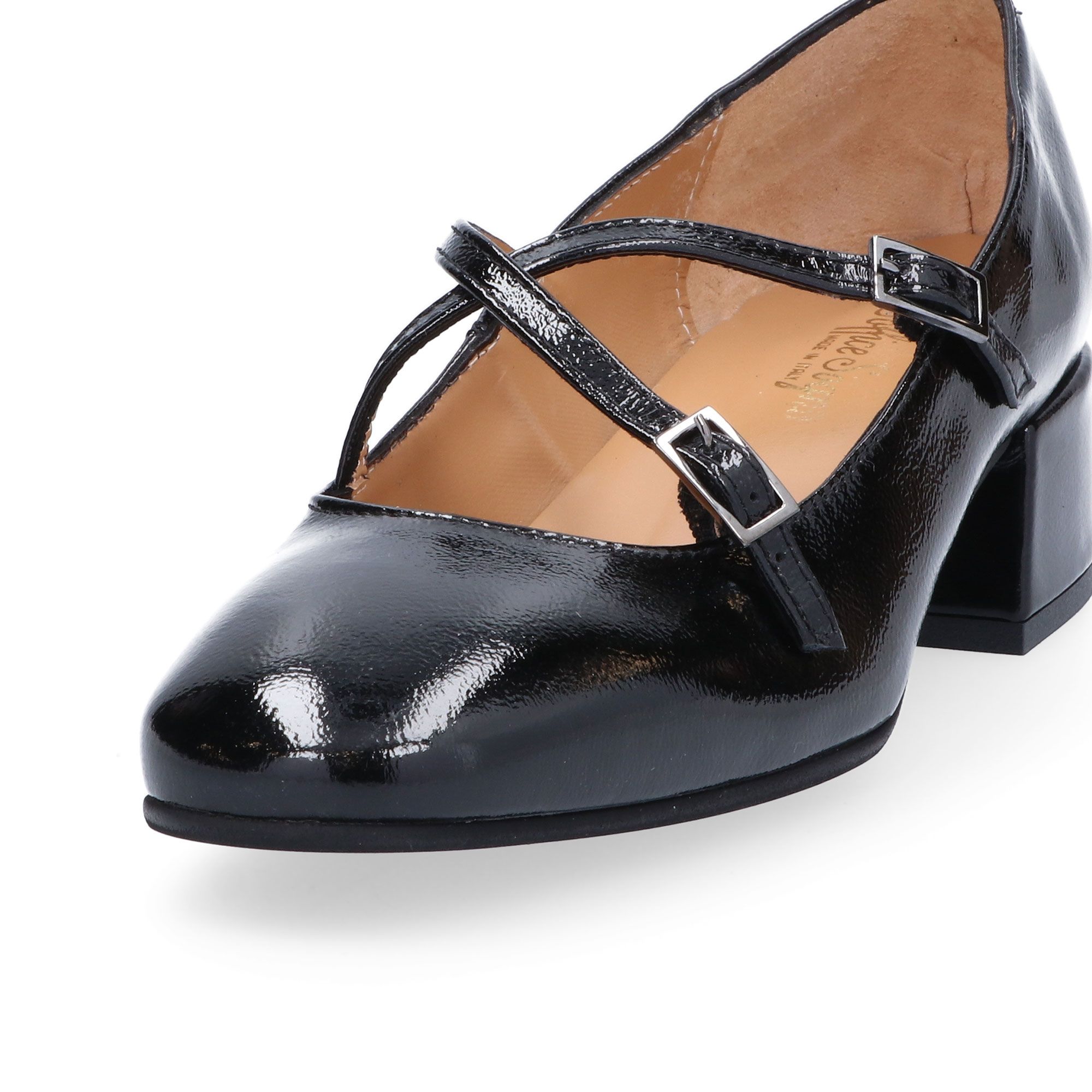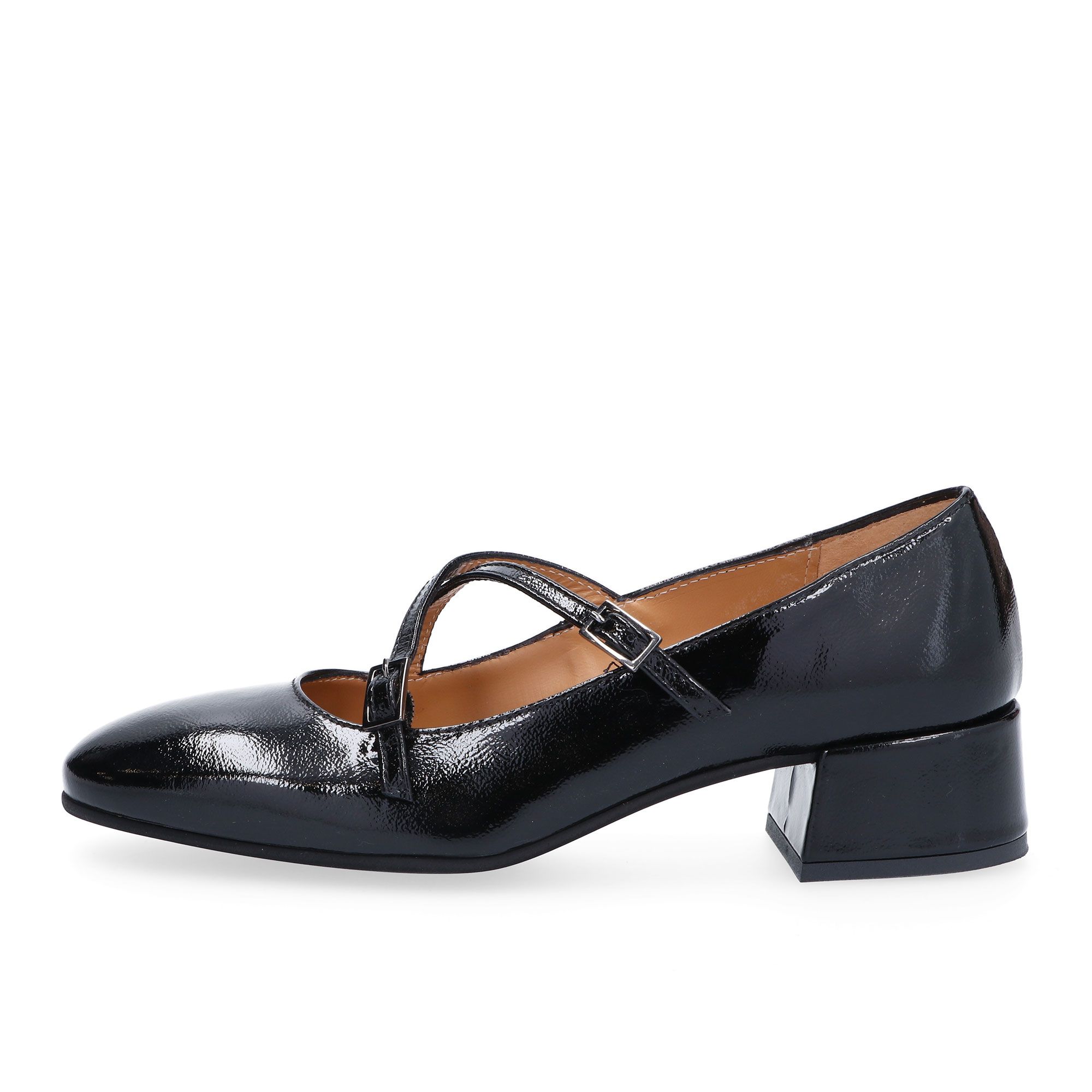 • décolleté in pelle con doppio cinturino incrociato sul collo del piede