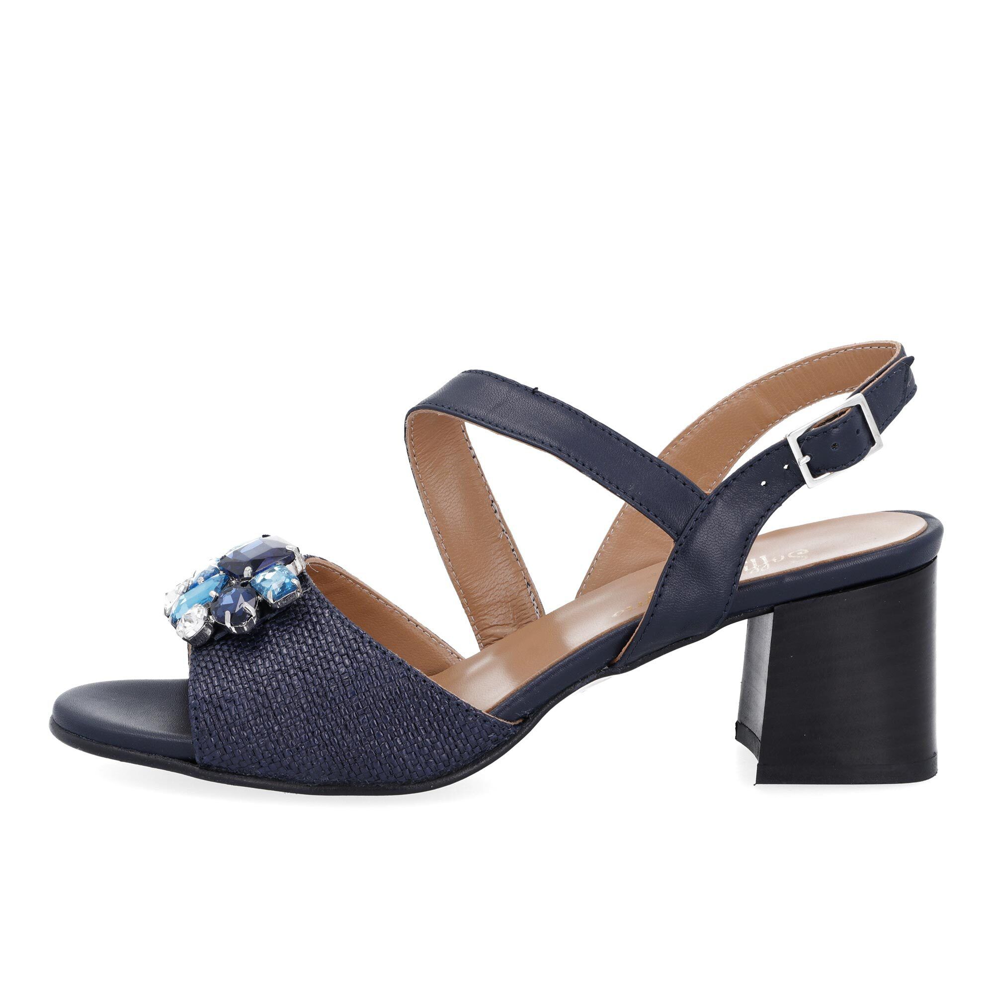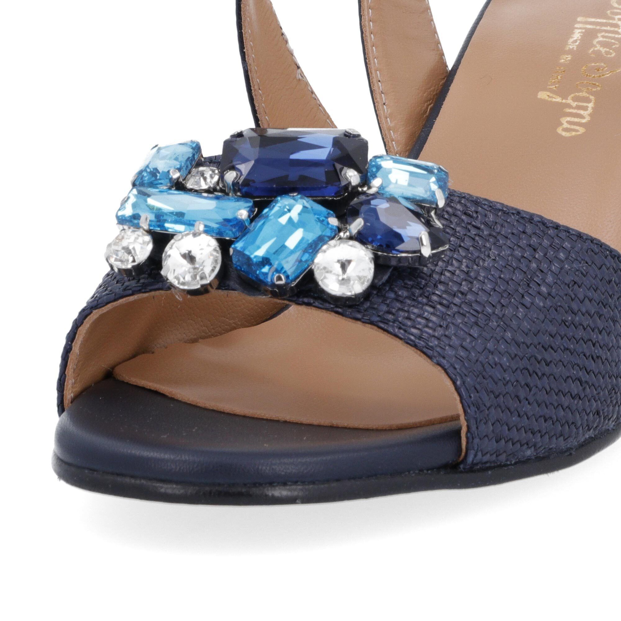 • sandali con fascia frontale in tessuto e accessorio gioiello