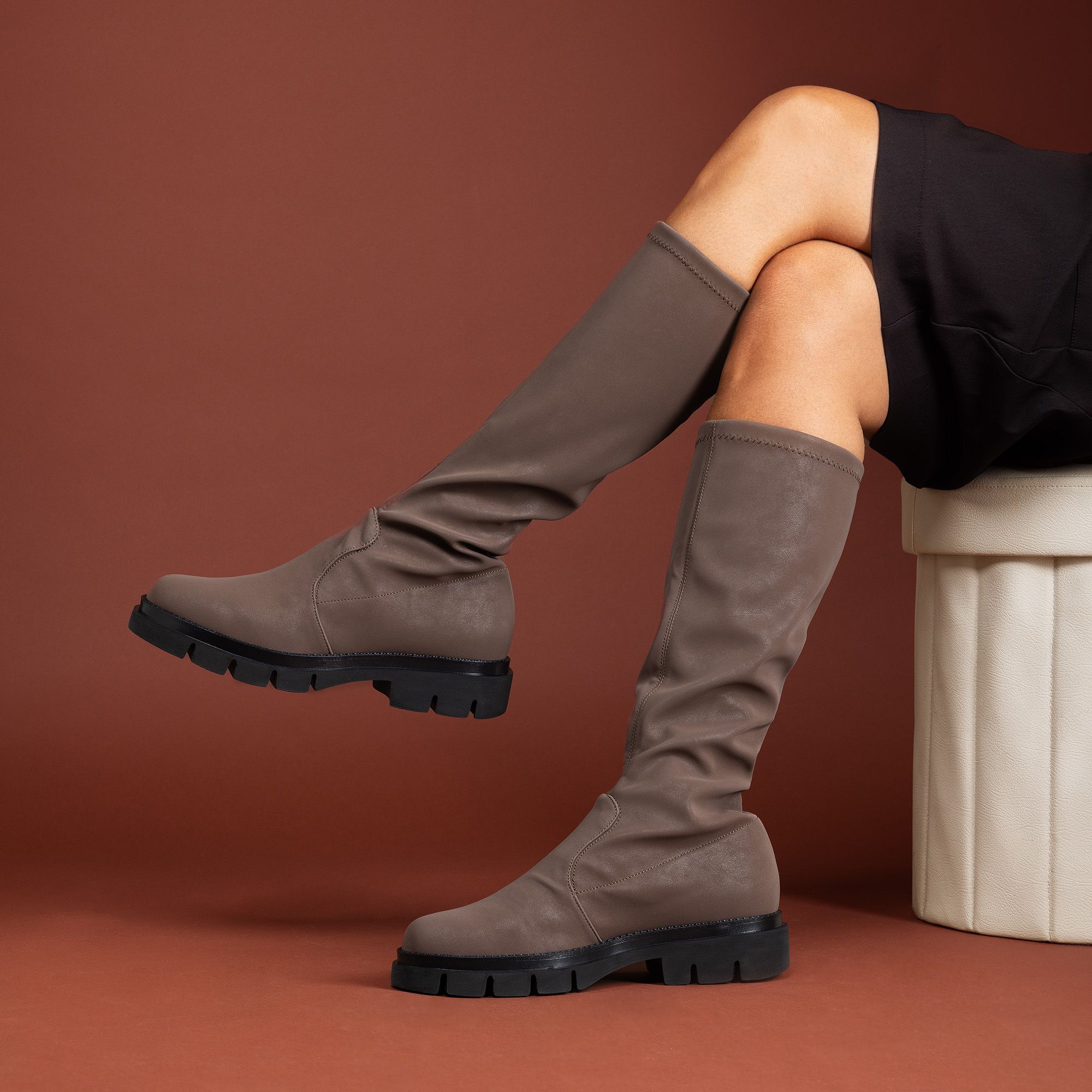 Stivali versatili e confortevoli, perfetti per completare look casual o urban con un tocco di stile grazie al tessuto effetto scamosciato e alla suola carrarmato.