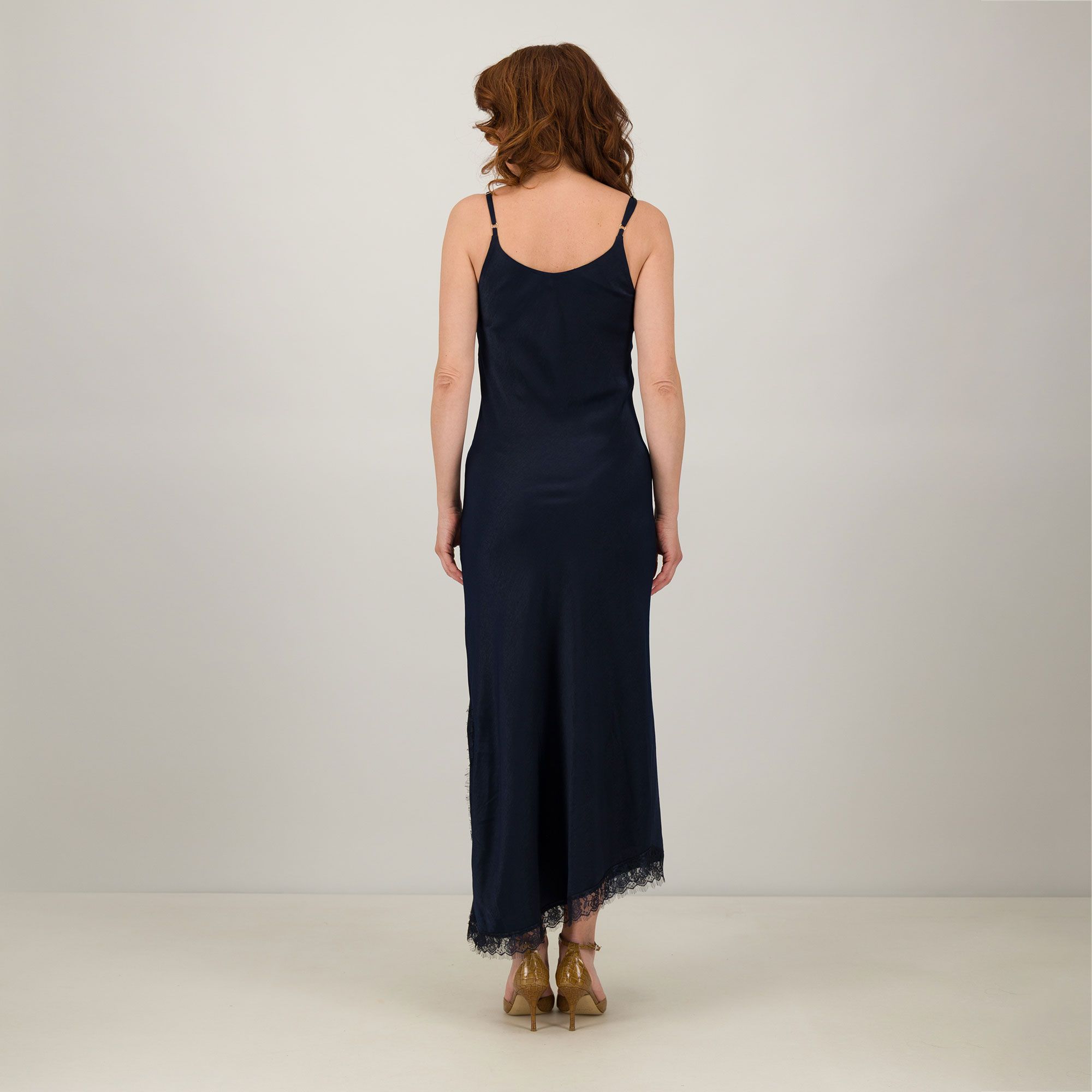 • abito sottoveste in raso di viscosa con spacco laterale