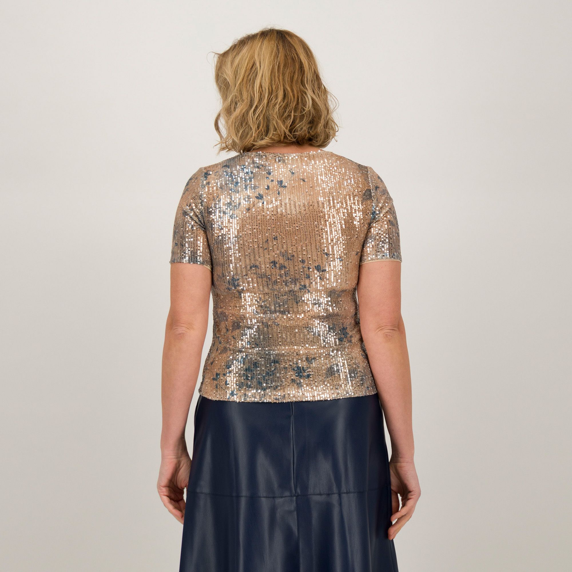 • blusa con scollo tondo ampio in paillettes