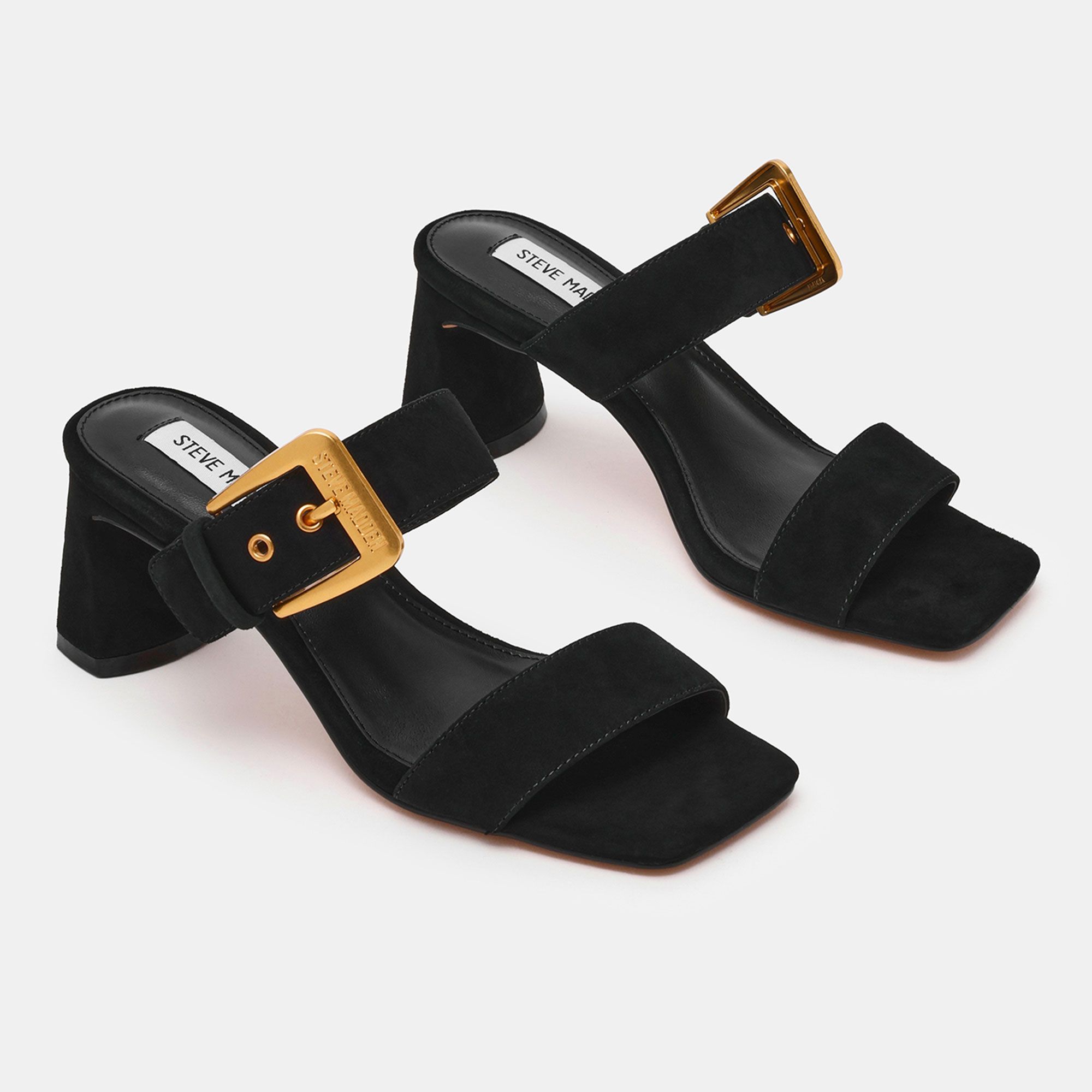 Questi sandali Steve Madden sono la scelta perfetta per dare un tocco moderno e raffinato ai tuoi look estivi. La punta quadrata e la maxi-fibbia aggiungono carattere e stile a ogni passo.