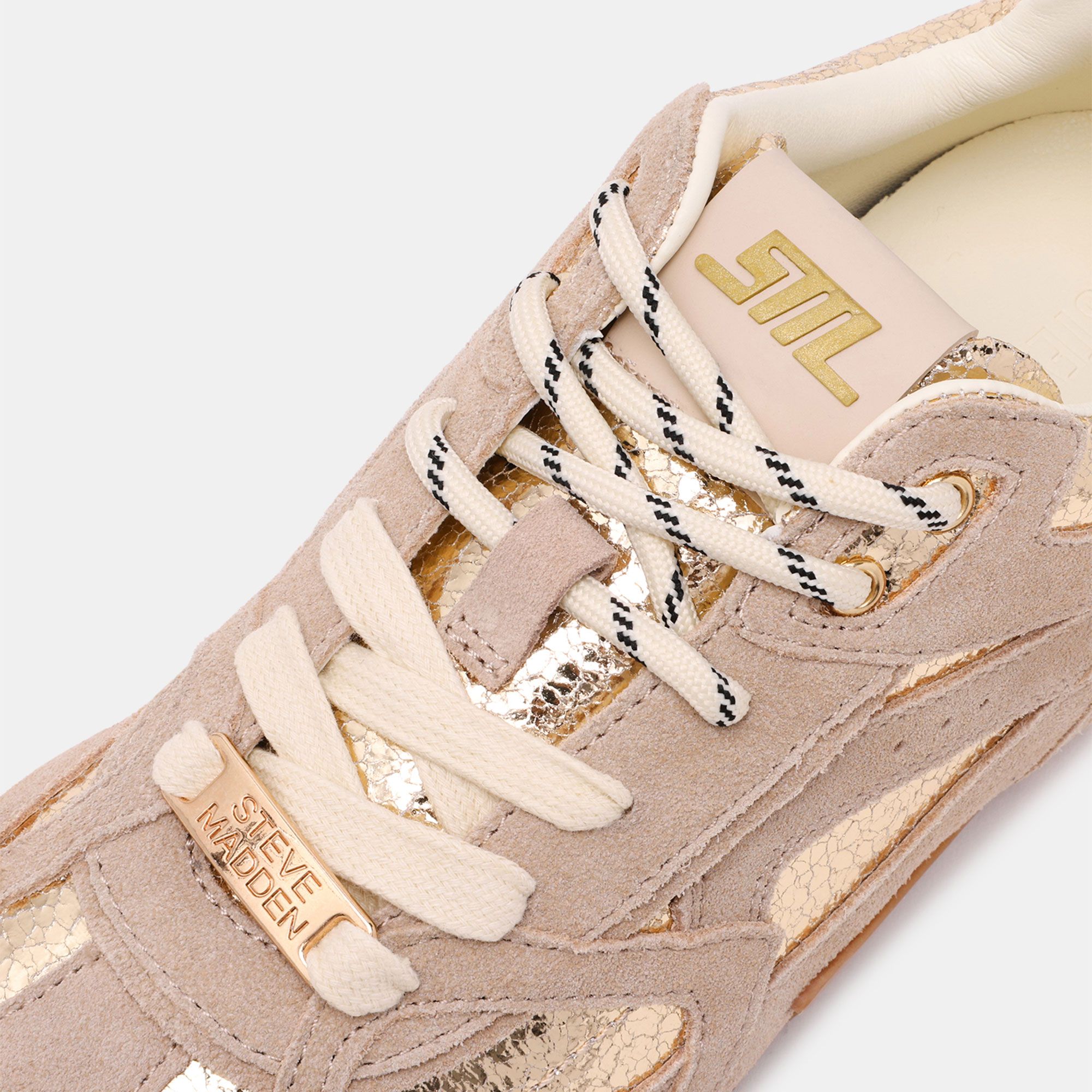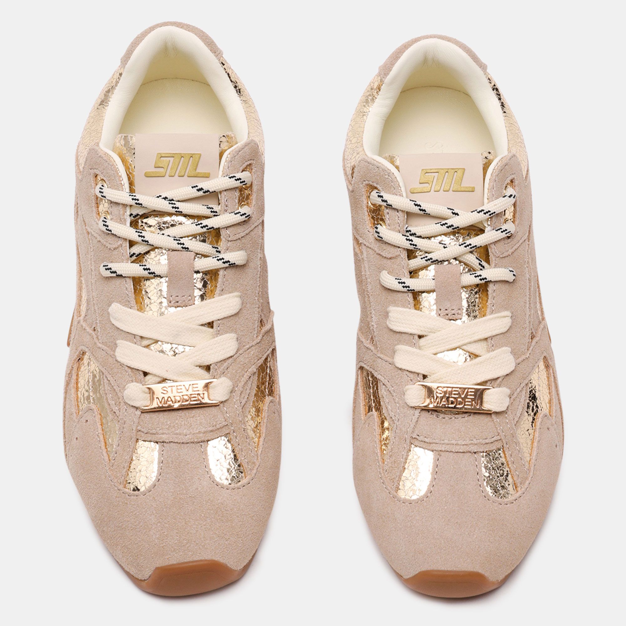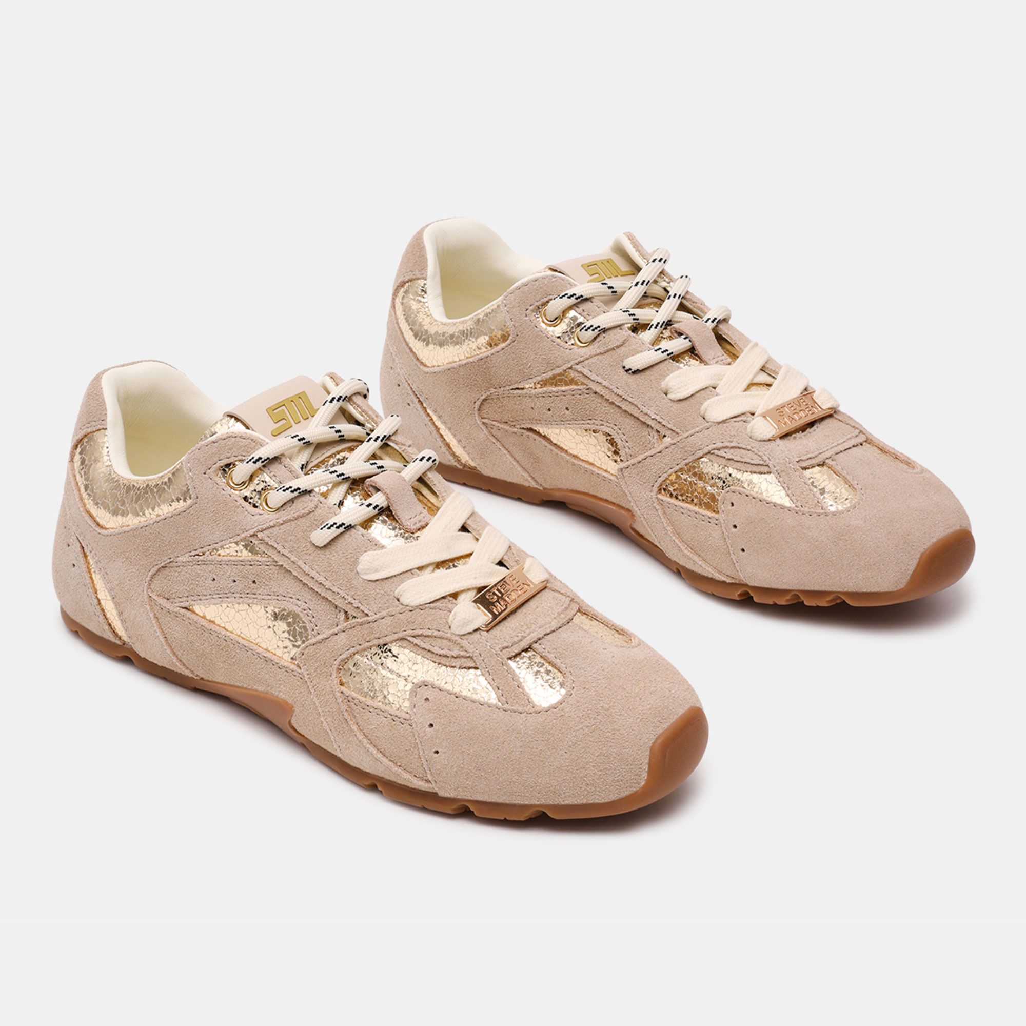 Sneaker versatili e di tendenza, perfette per aggiungere un tocco moderno ai tuoi look casual grazie ai dettagli laminati e alla comodità del soletto imbottito.