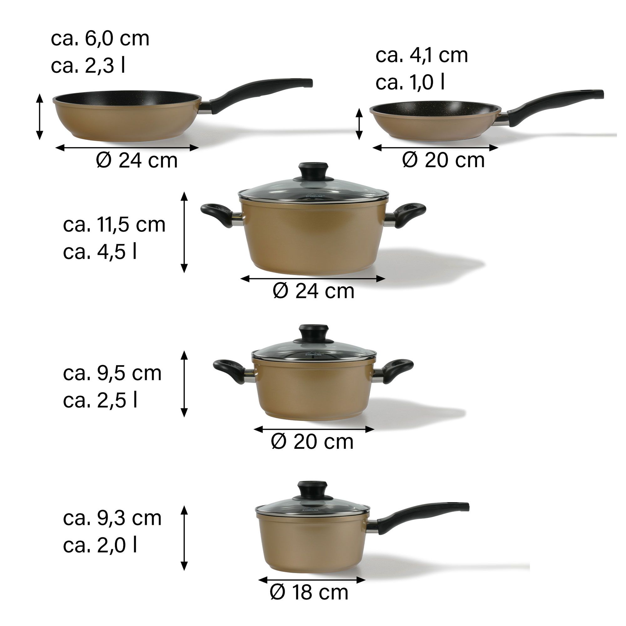 • casseruola: diametro 24 cm, altezza 6,0 cm, capacità 2,2 l