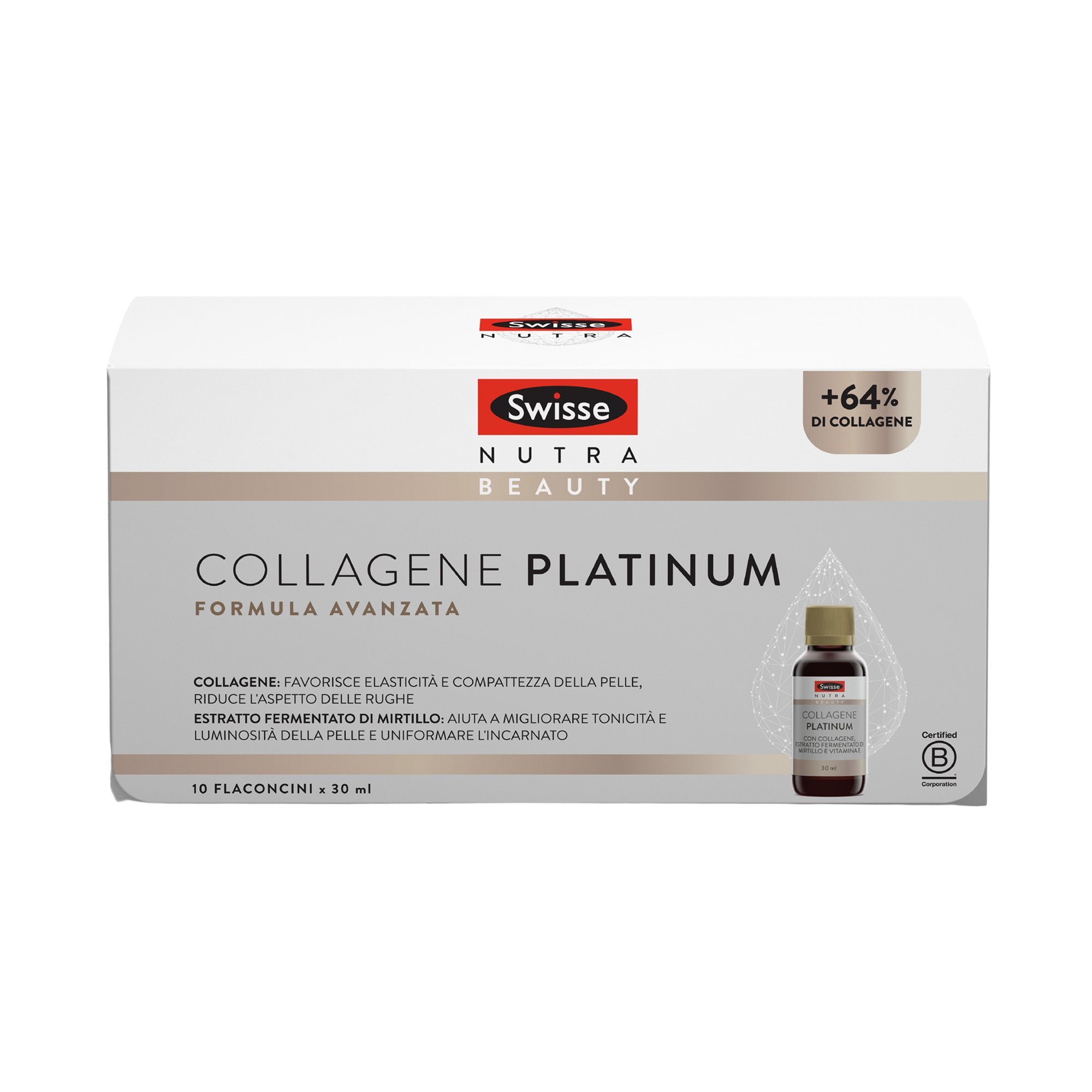 • integratore alimentare liquido Swisse Beauty Collagene Platinum (10 flaconcini - 300 ml totali)