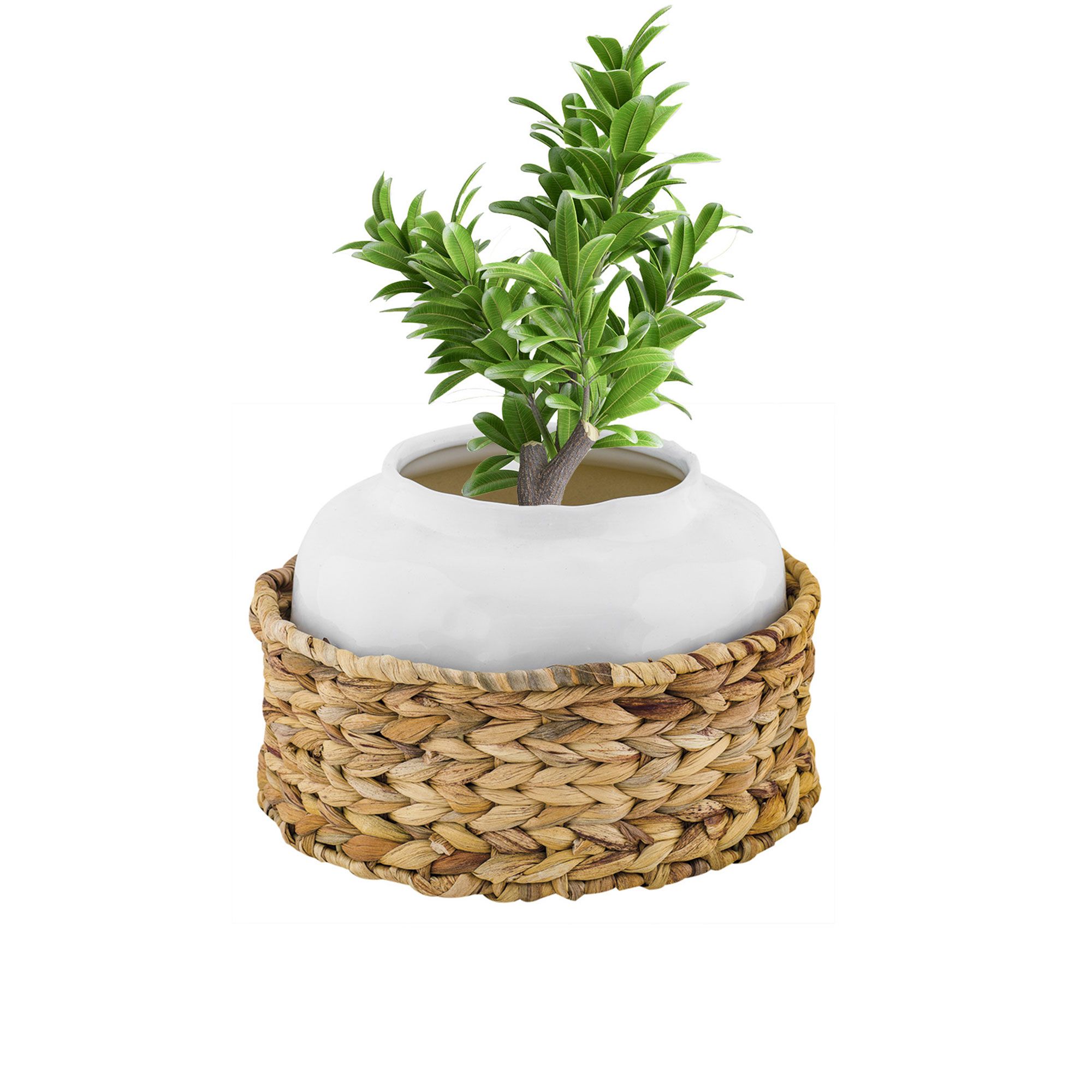 • il contrasto tra ceramica e rattan crea un effetto decorativo elegante e naturale