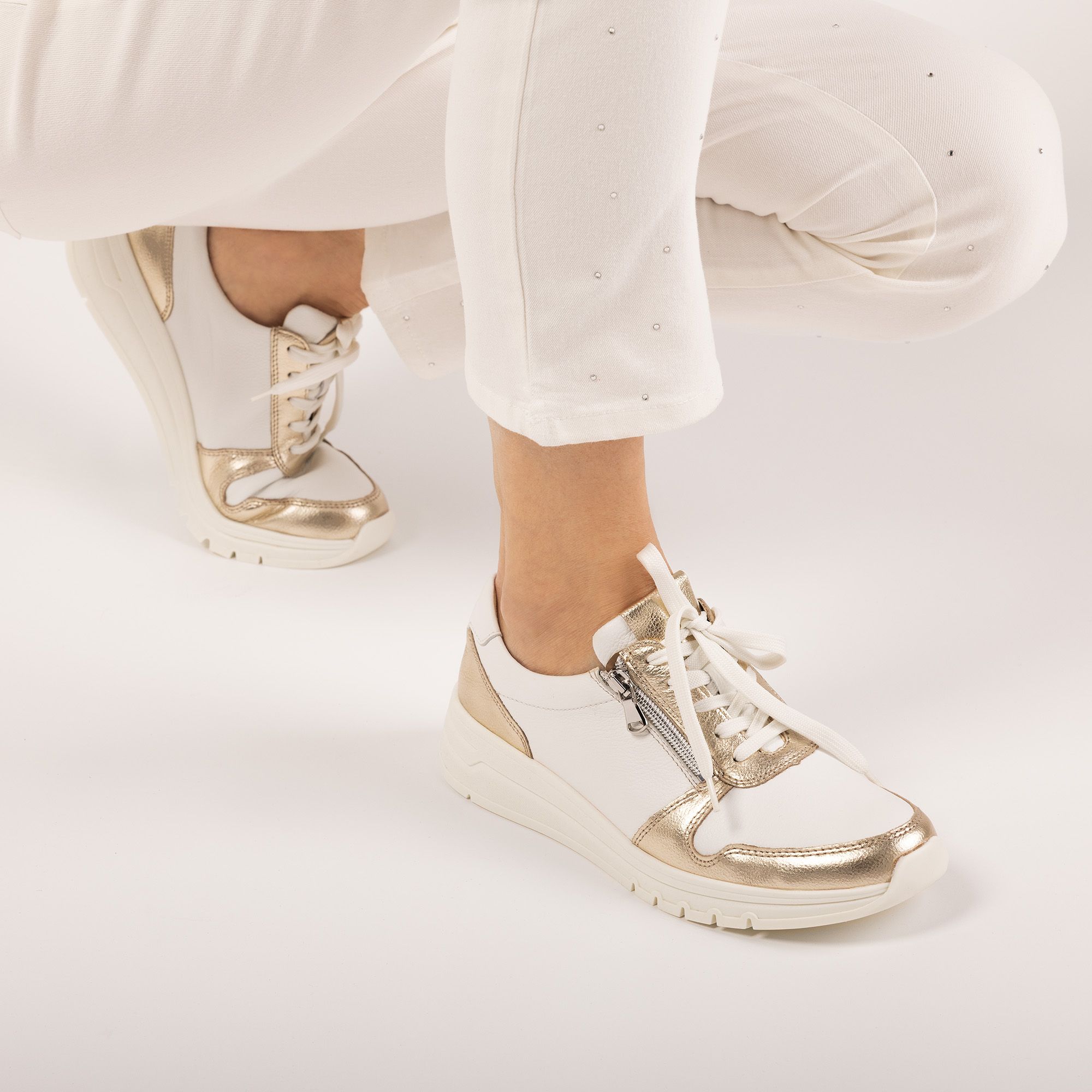 • inserti in pelle metallizzata per le varianti bianco/oro e bianco/argento