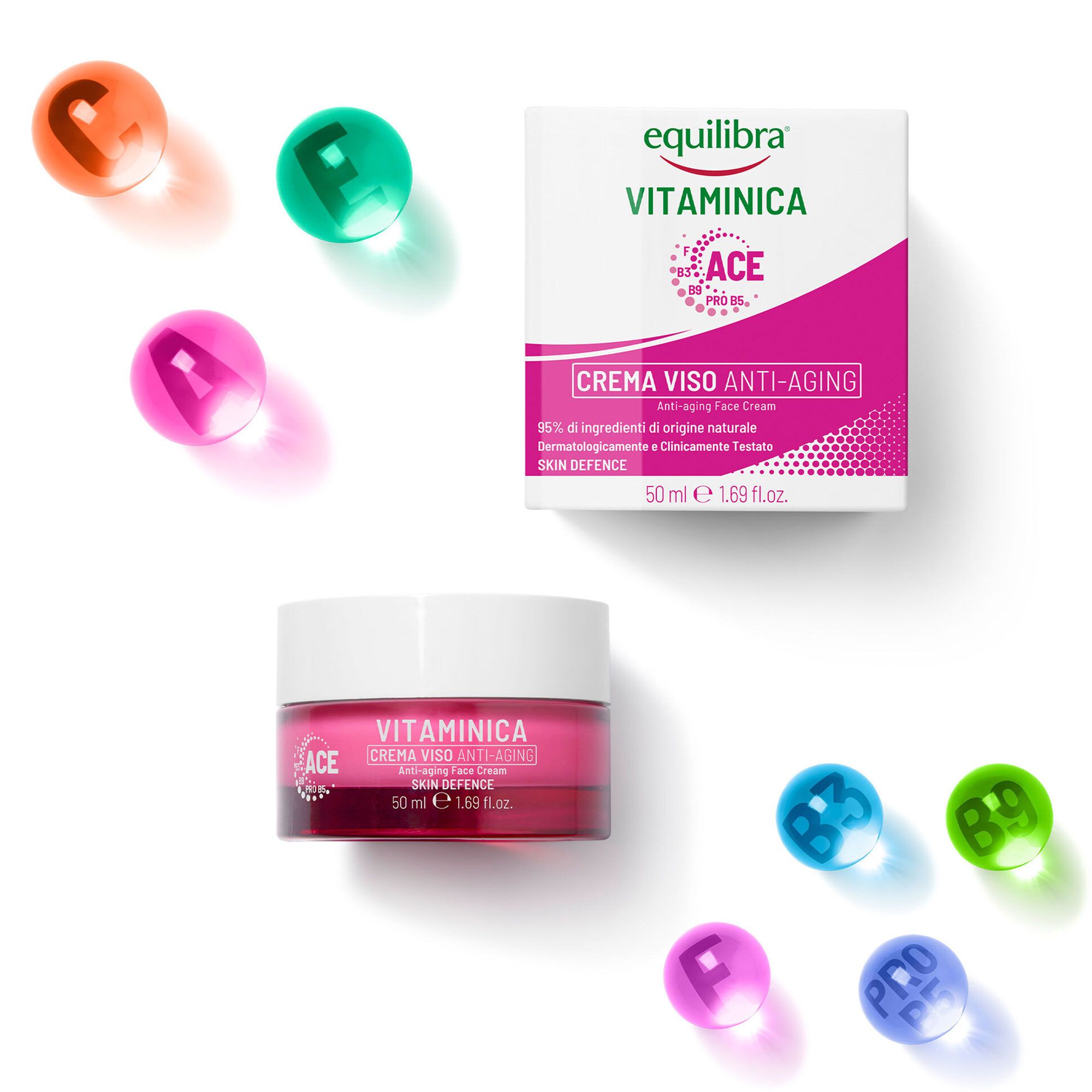 Vitaminica di Equilibra è un sistema avanzato per la skincare e l’integrazione alimentare che combina cinque lettere per un totale di sette vitamine amiche della pelle. Sono le vitamine A, B3, B5, B9, C, E ed F, che proteggono, nutrono, rinvigoriscono la bellezza interiore ed esteriore. Il sistema è efficace dentro e fuori e tiene in considerazione ogni aspetto, poiché tutto è importante per prendersi cura di sé.
