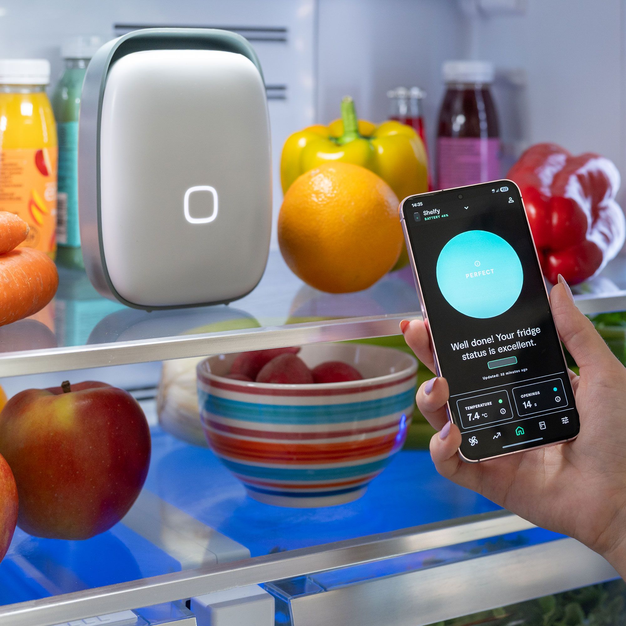 • Shelfy è un purificatore d’aria per il frigorifero domestico pensato per ridurre odori, microorganismi e composti chimici responsabili del deterioramento del cibo fresco (principalmente frutta e verdura) ed aumentare la loro durata anche fino a una settimana, nel caso di alimenti che di regola non raggiungono tale durata in assenza di Shelfy