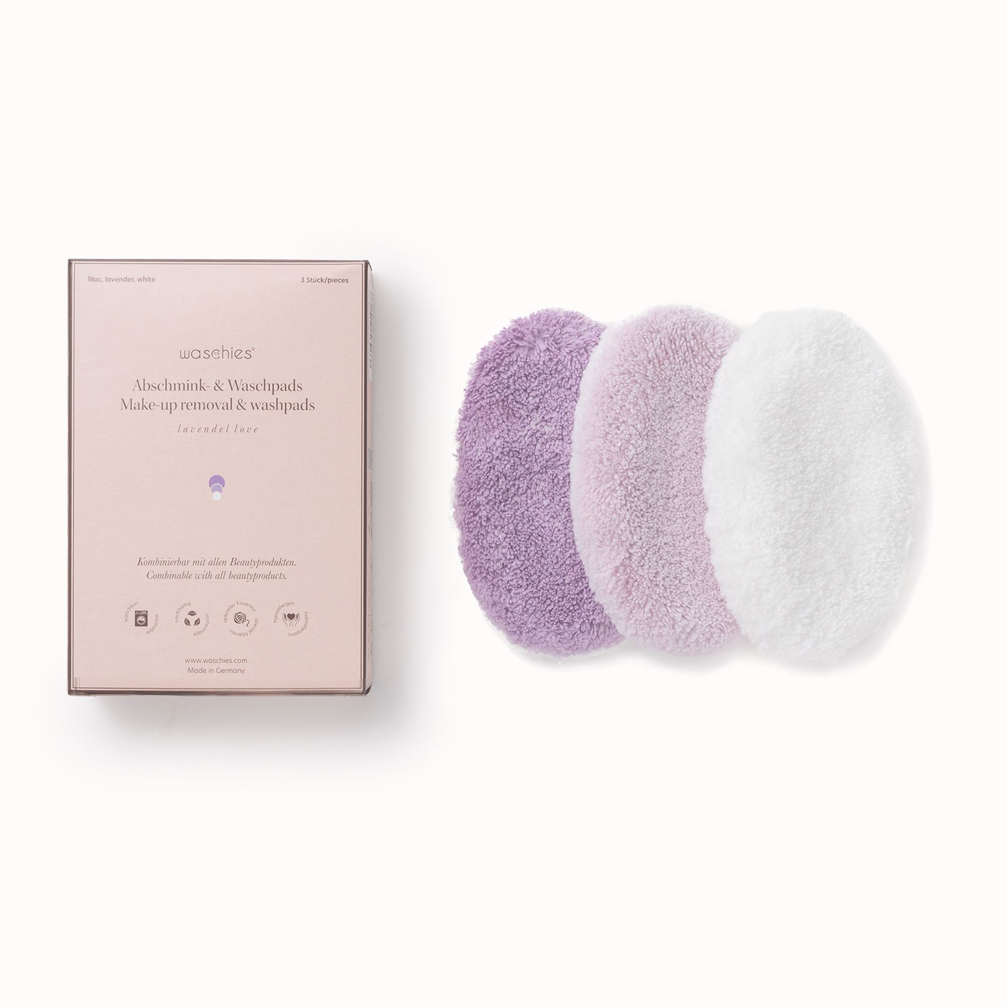 • i dischetti Waschies sono realizzati con microfibra e viscosa, per rimuovere trucco e impurità solo con acqua e senza irritare la pelle