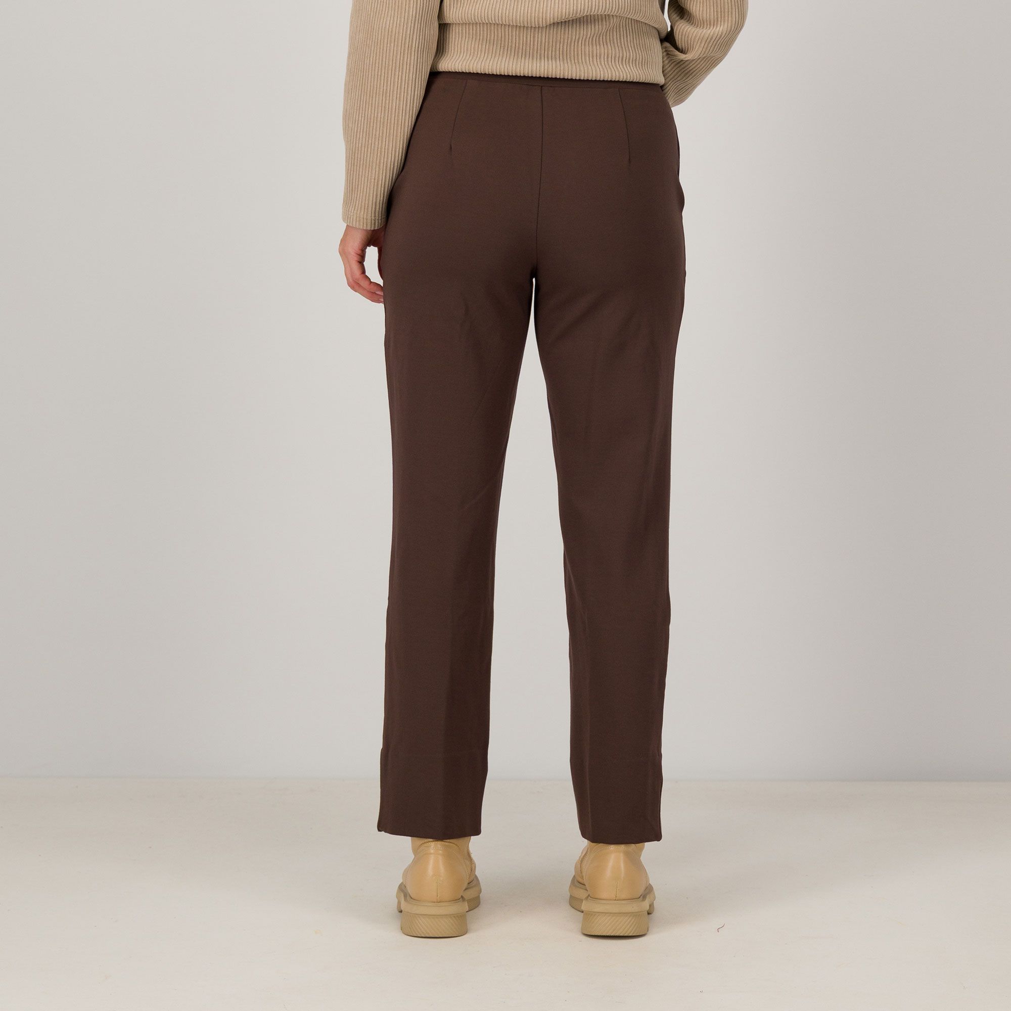• pantaloni in punto Milano con nervatura frontale cucita e spacchetto centrale